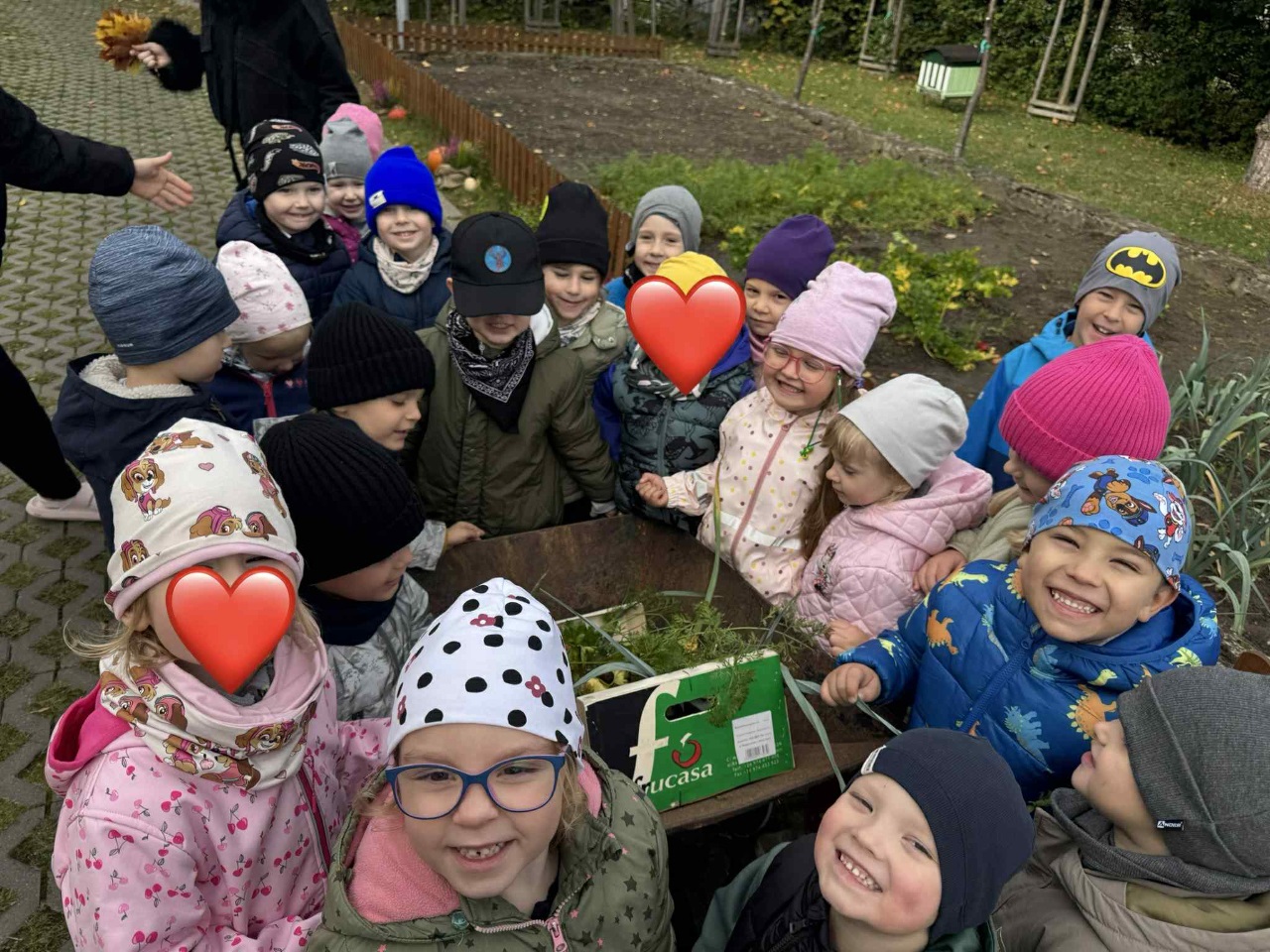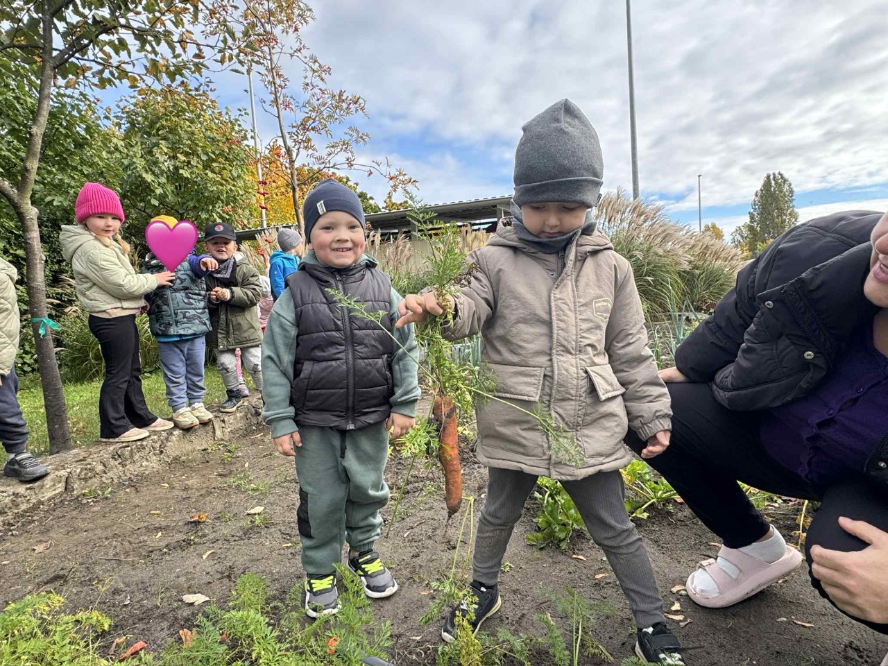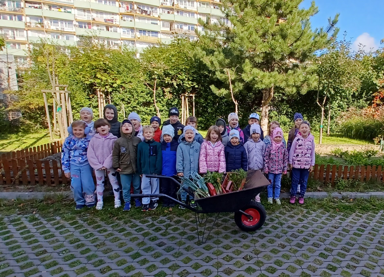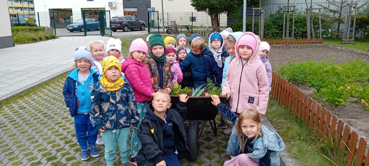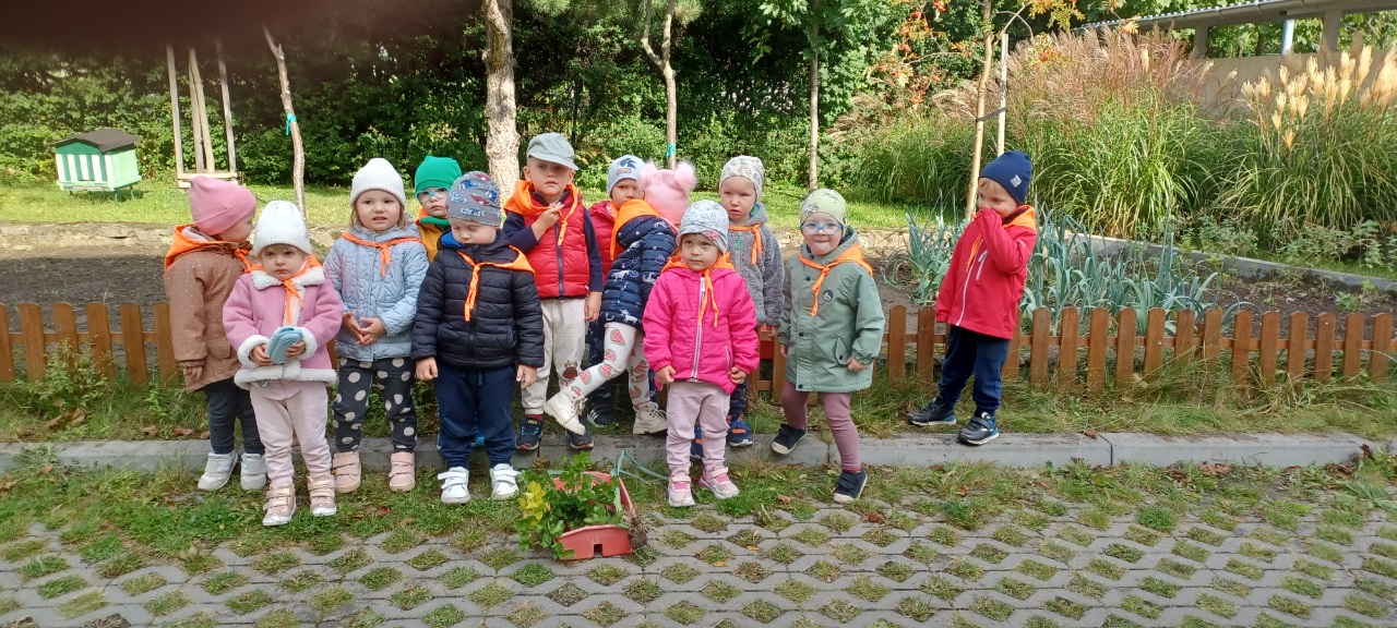 Ekoludki w dniu dzisiejszym zebrały plony z naszego ogródka i przekazały je paniom kucharkom, które jutro ugotują dzieciom pyszny rosołek.