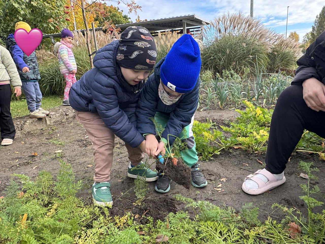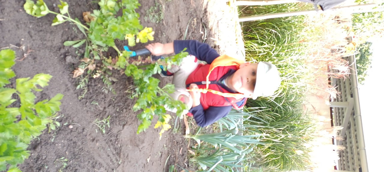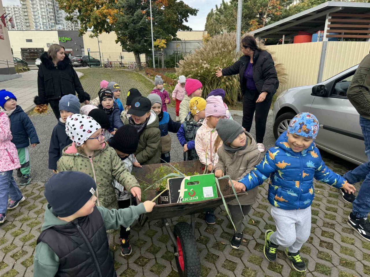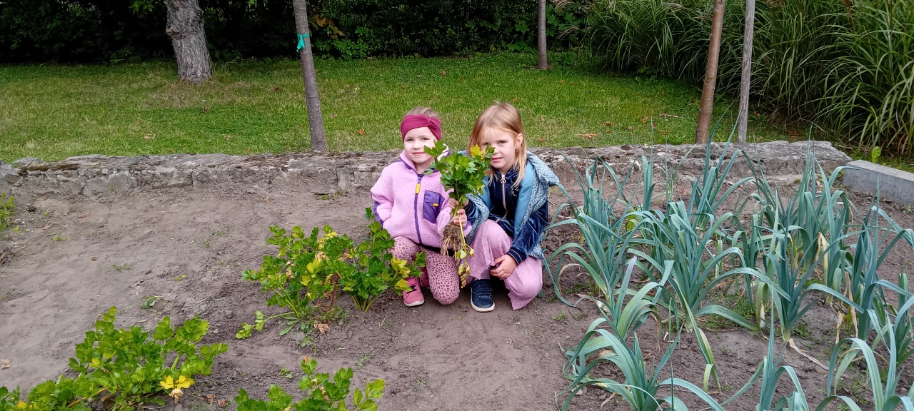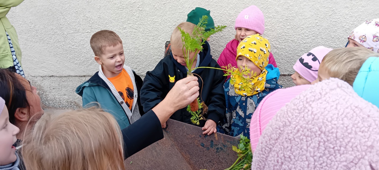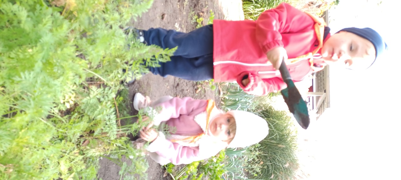 Ekoludki w dniu dzisiejszym zebrały plony z naszego ogródka i przekazały je paniom kucharkom, które jutro ugotują dzieciom pyszny rosołek.