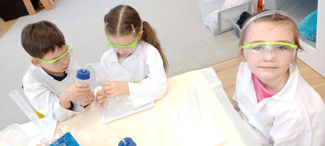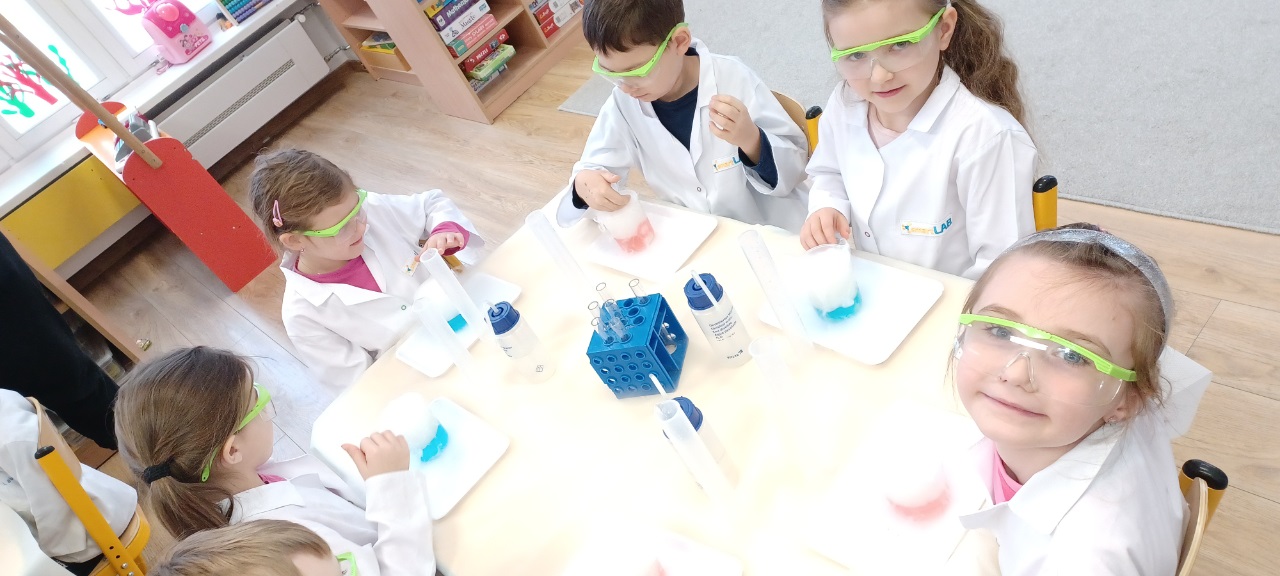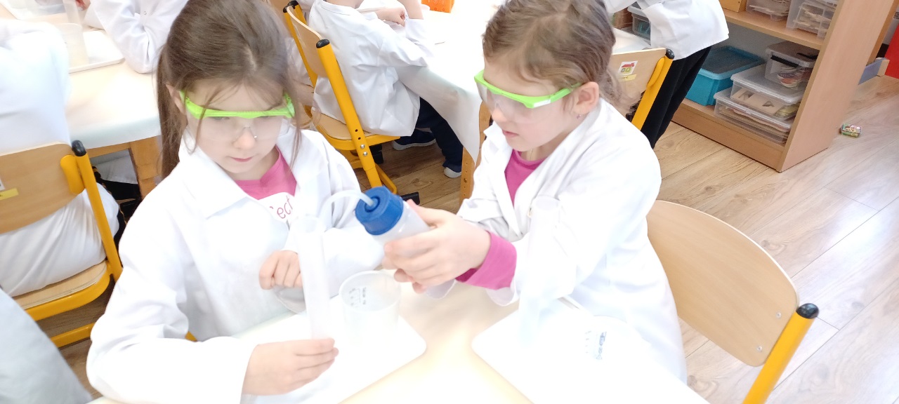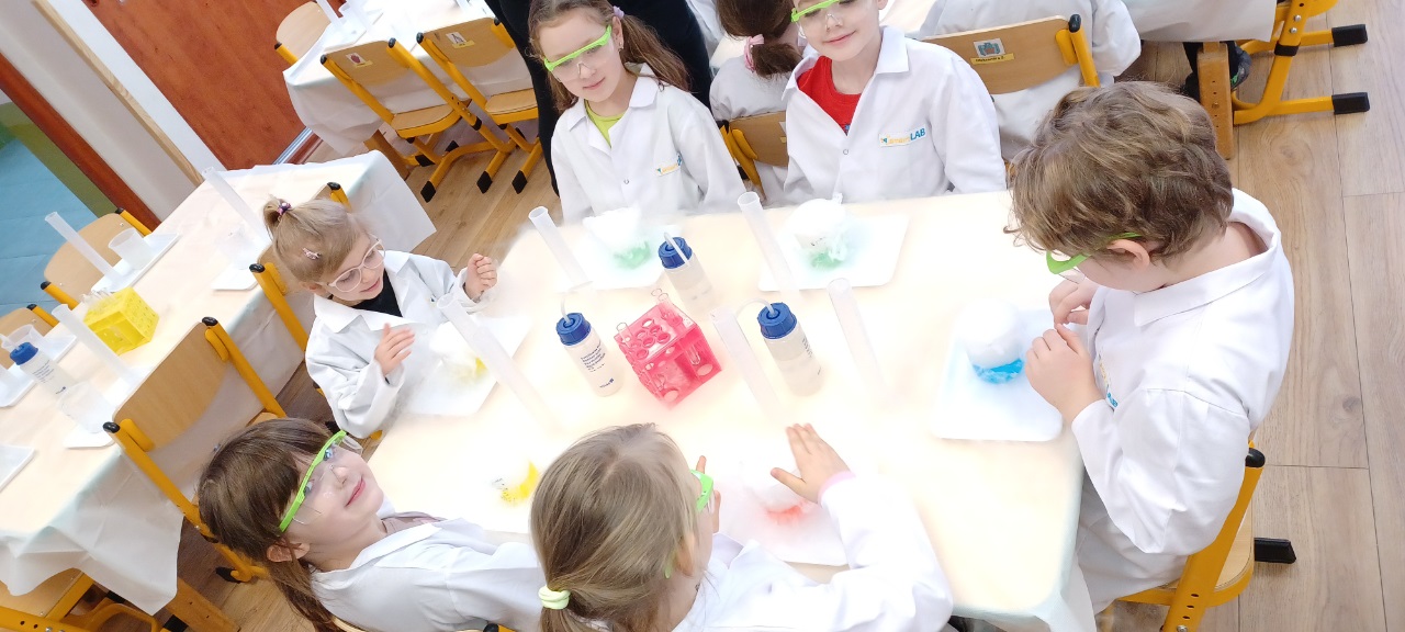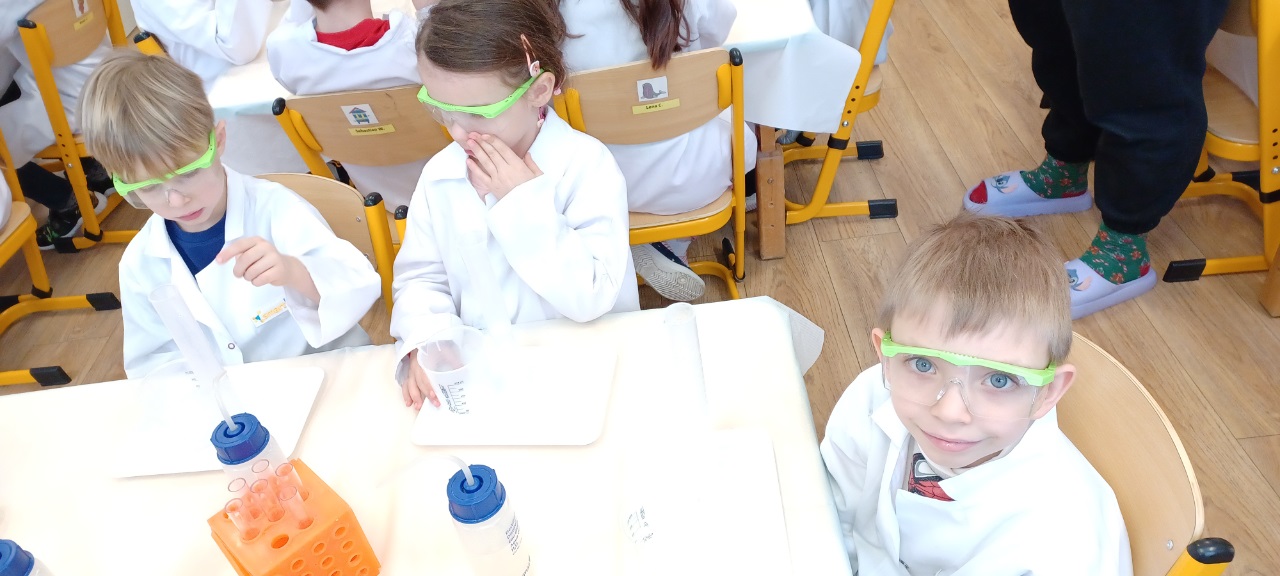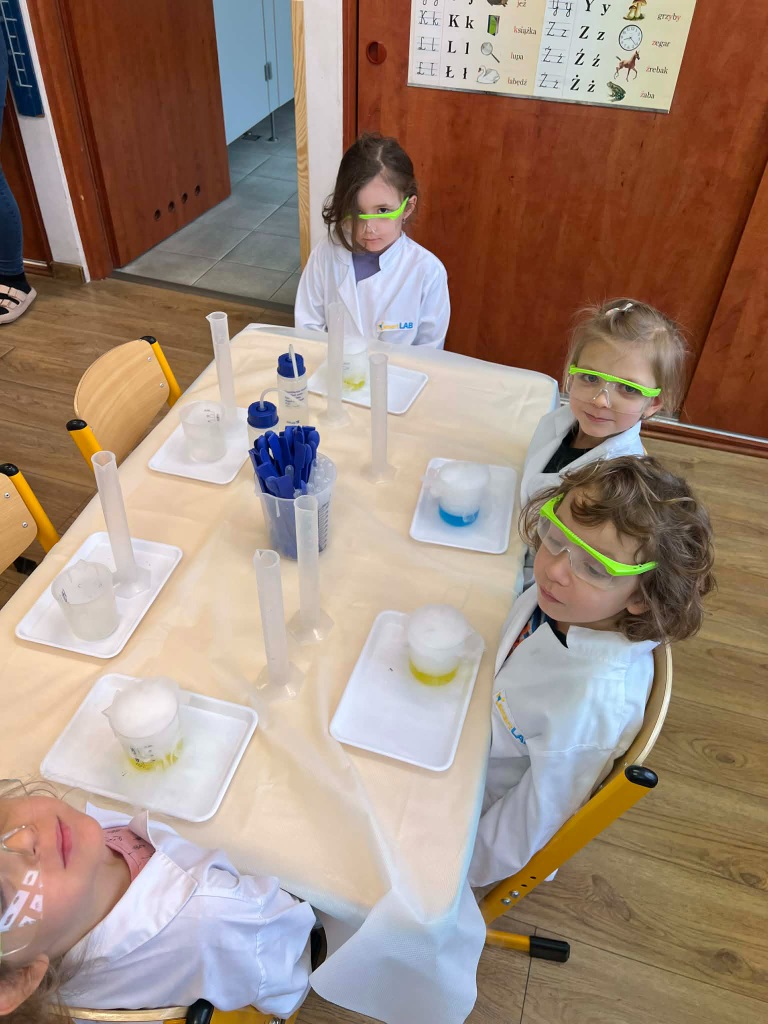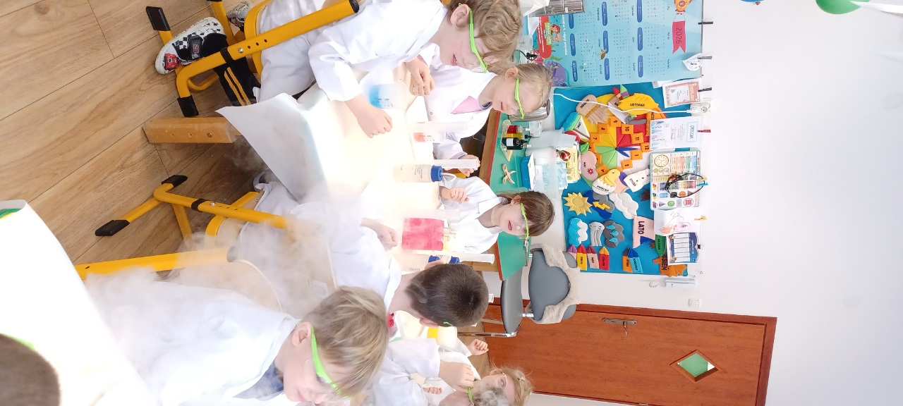 W dniu dziejszym Kosmoludki i Ekoludki wzięły udział w warsztatach chemicznych zorganizowanych przez Centrum Edukacji SmartLab pt. "Suchy lód i magiczna chmurka".