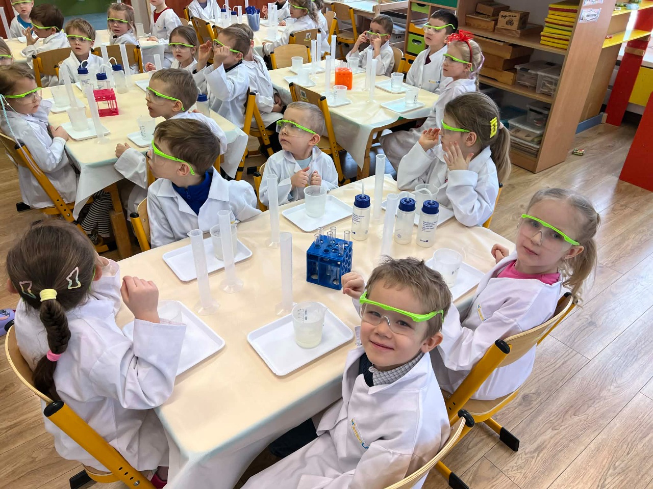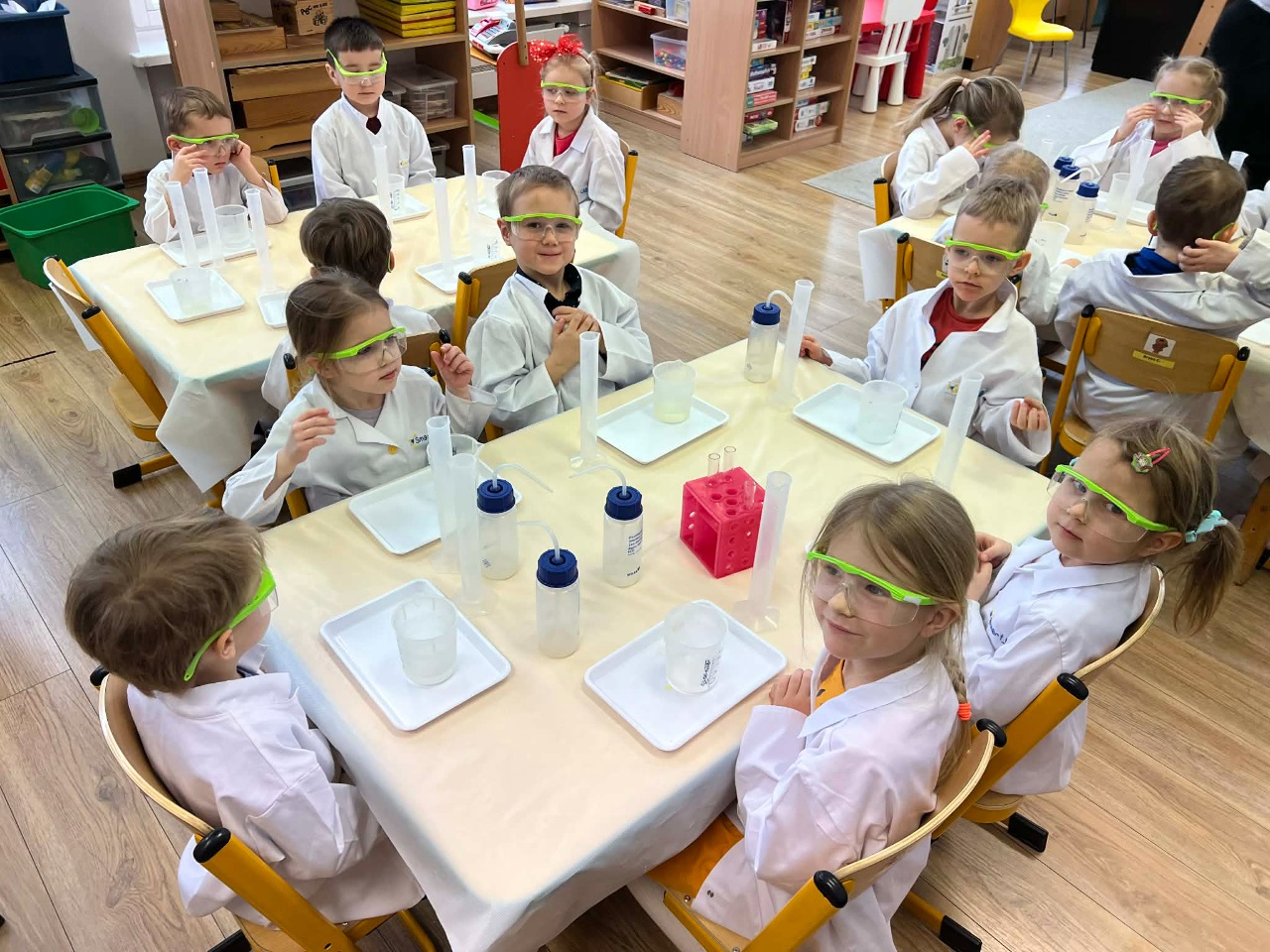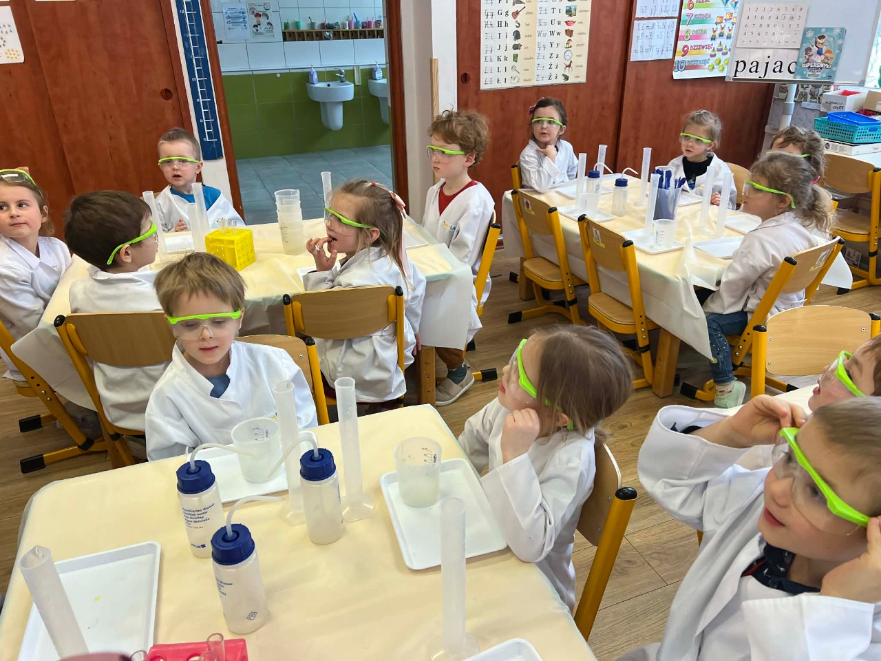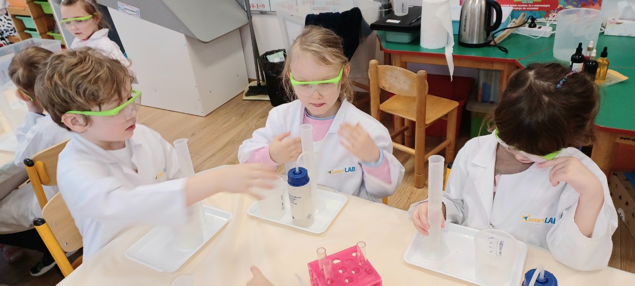 W dniu dziejszym Kosmoludki i Ekoludki wzięły udział w warsztatach chemicznych zorganizowanych przez Centrum Edukacji SmartLab pt. "Suchy lód i magiczna chmurka".