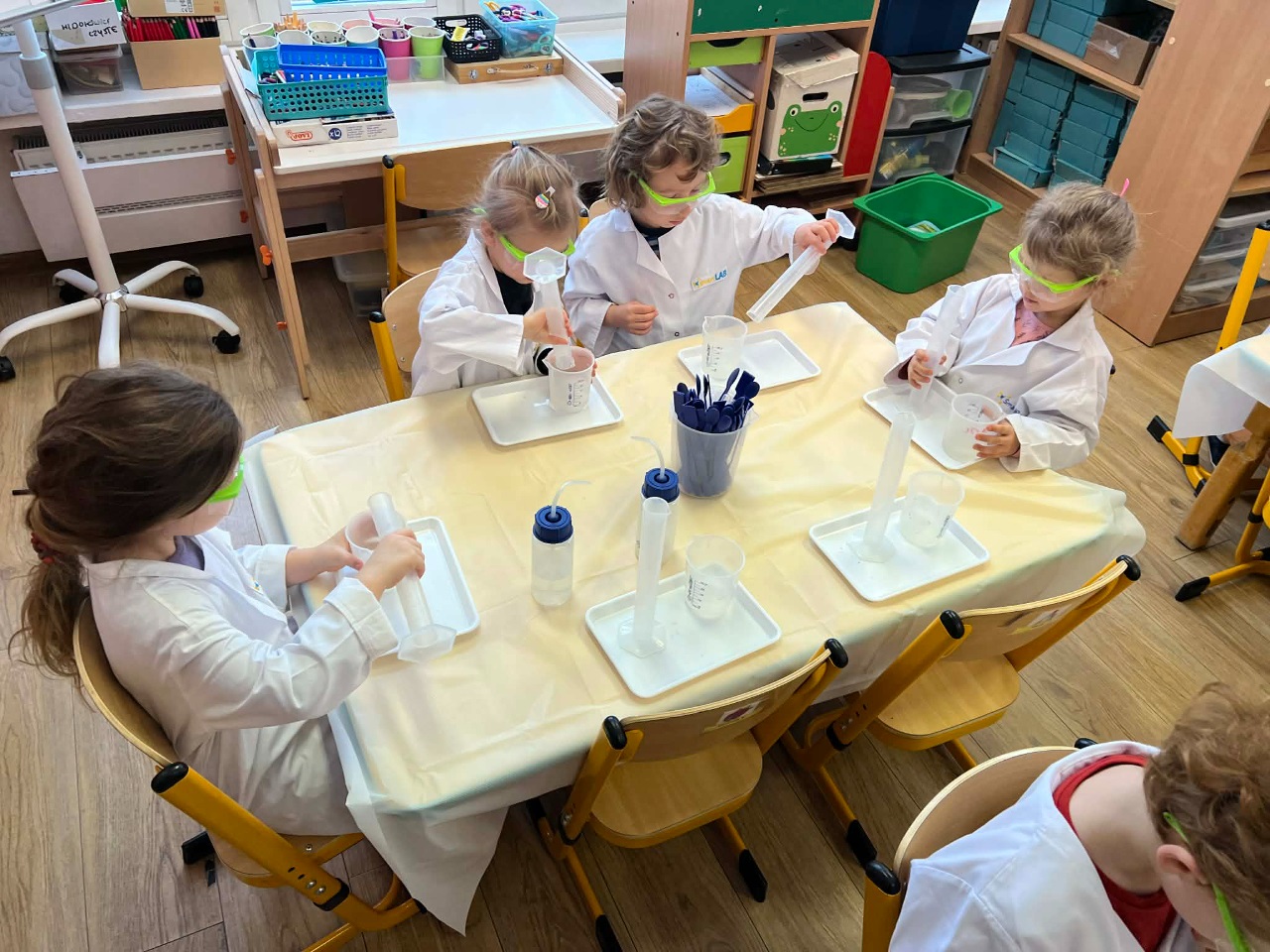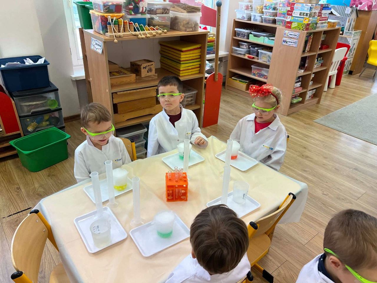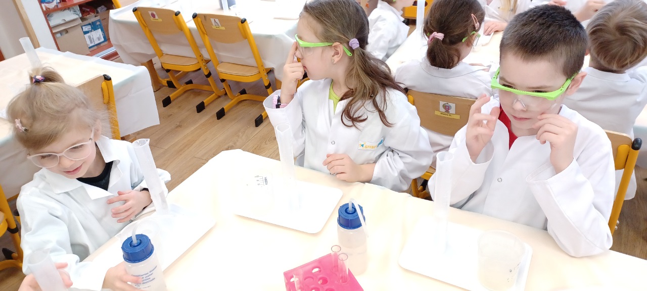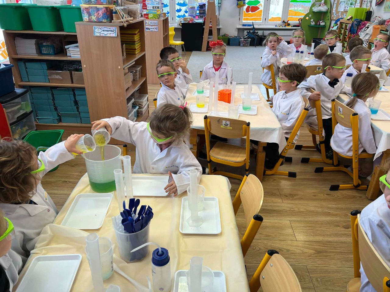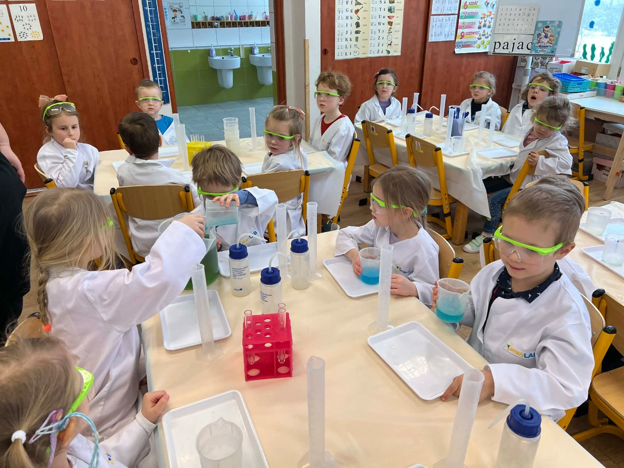 W dniu dziejszym Kosmoludki i Ekoludki wzięły udział w warsztatach chemicznych zorganizowanych przez Centrum Edukacji SmartLab pt. "Suchy lód i magiczna chmurka".