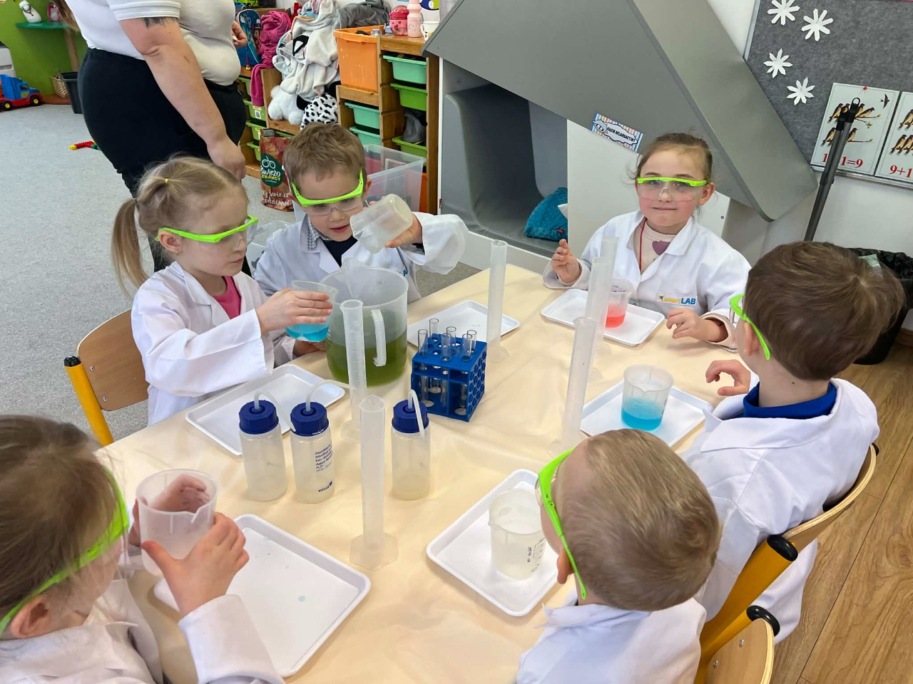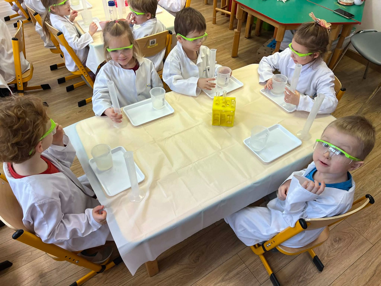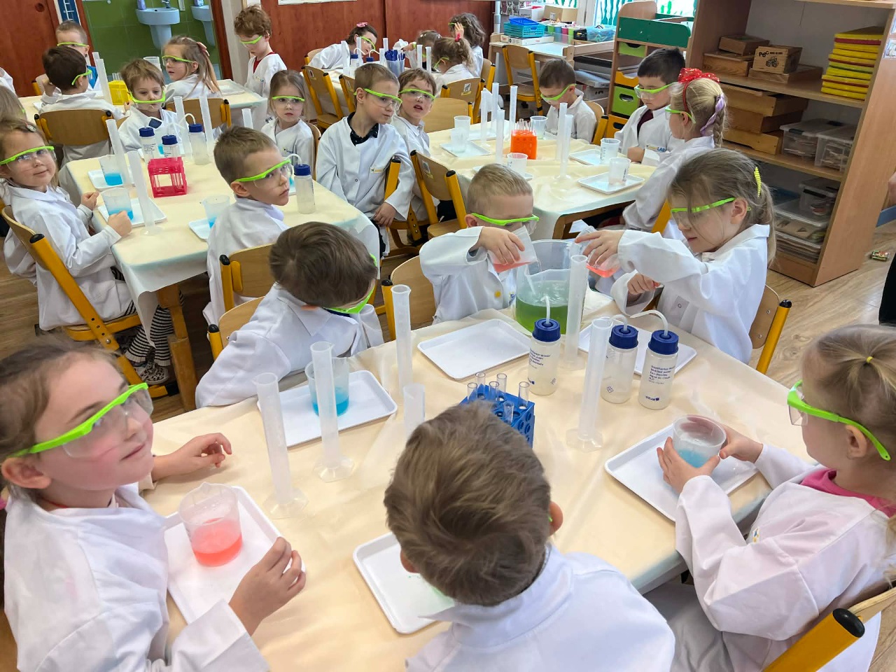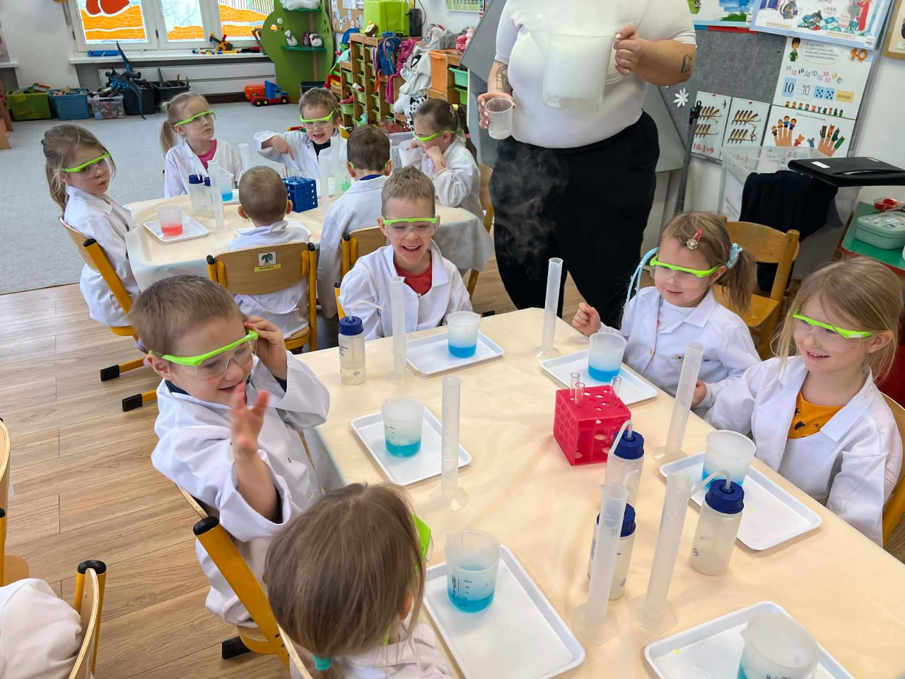 W dniu dziejszym Kosmoludki i Ekoludki wzięły udział w warsztatach chemicznych zorganizowanych przez Centrum Edukacji SmartLab pt. "Suchy lód i magiczna chmurka".