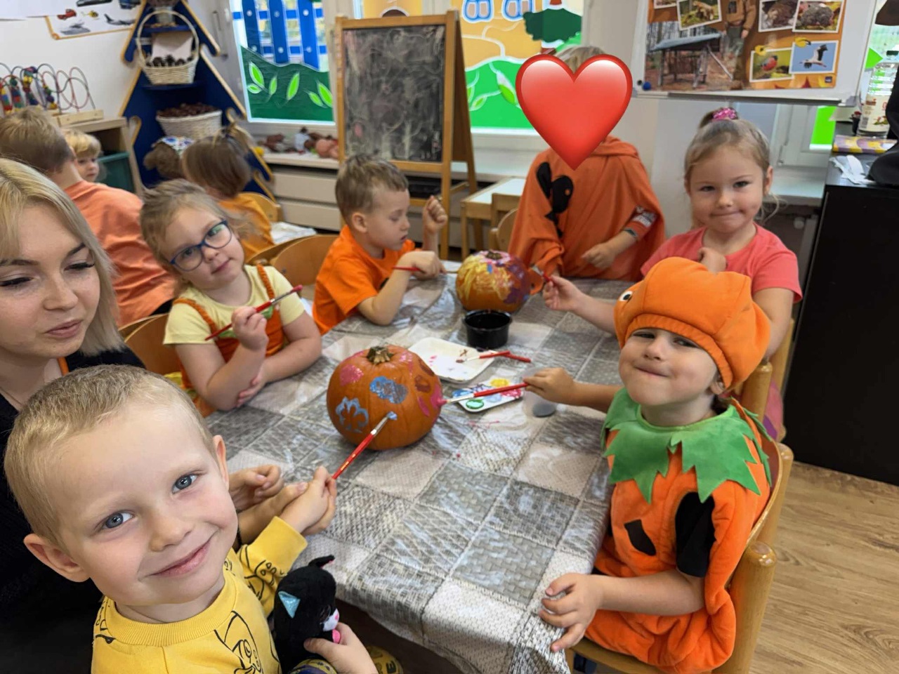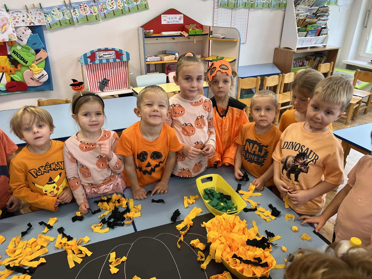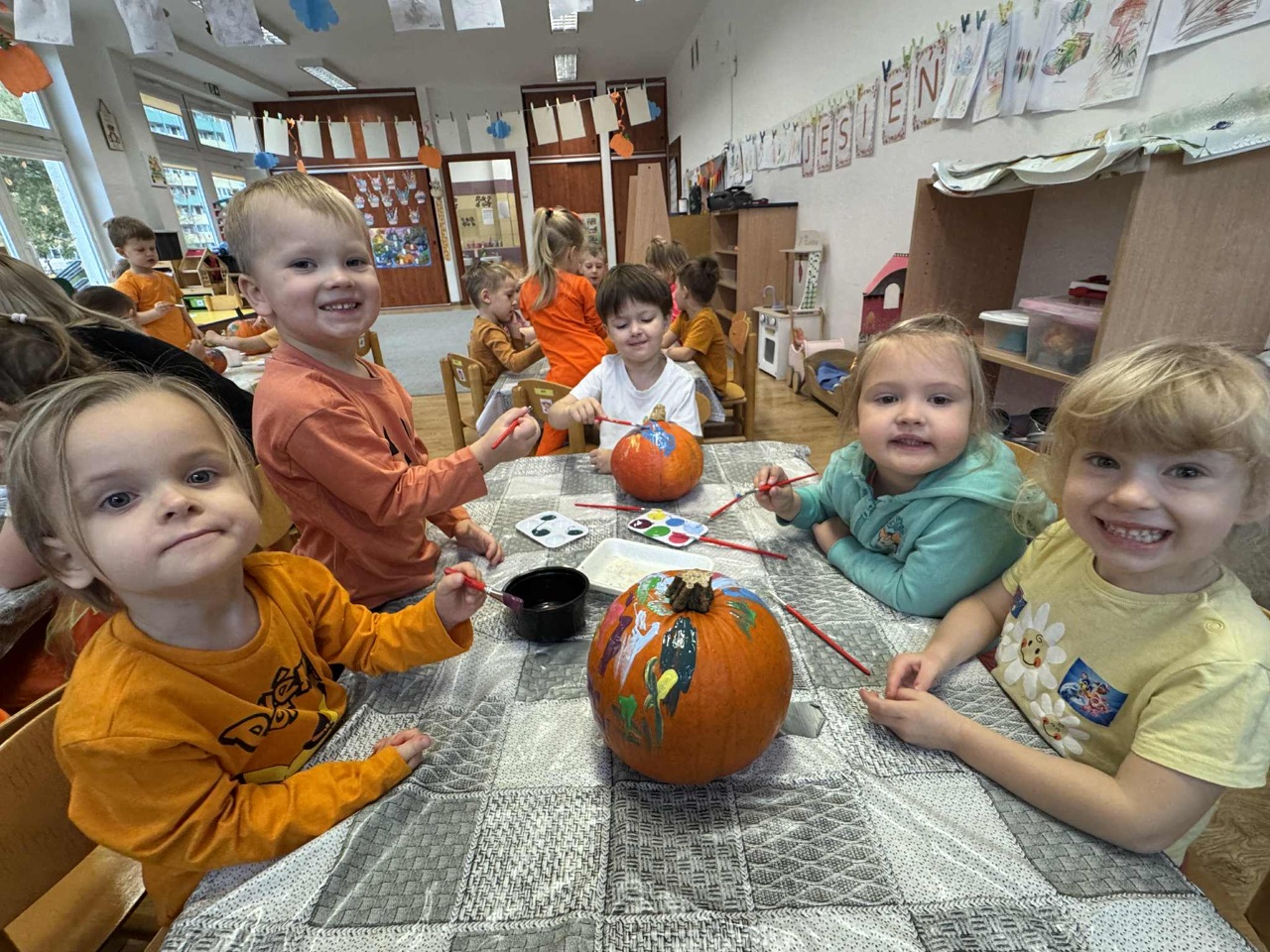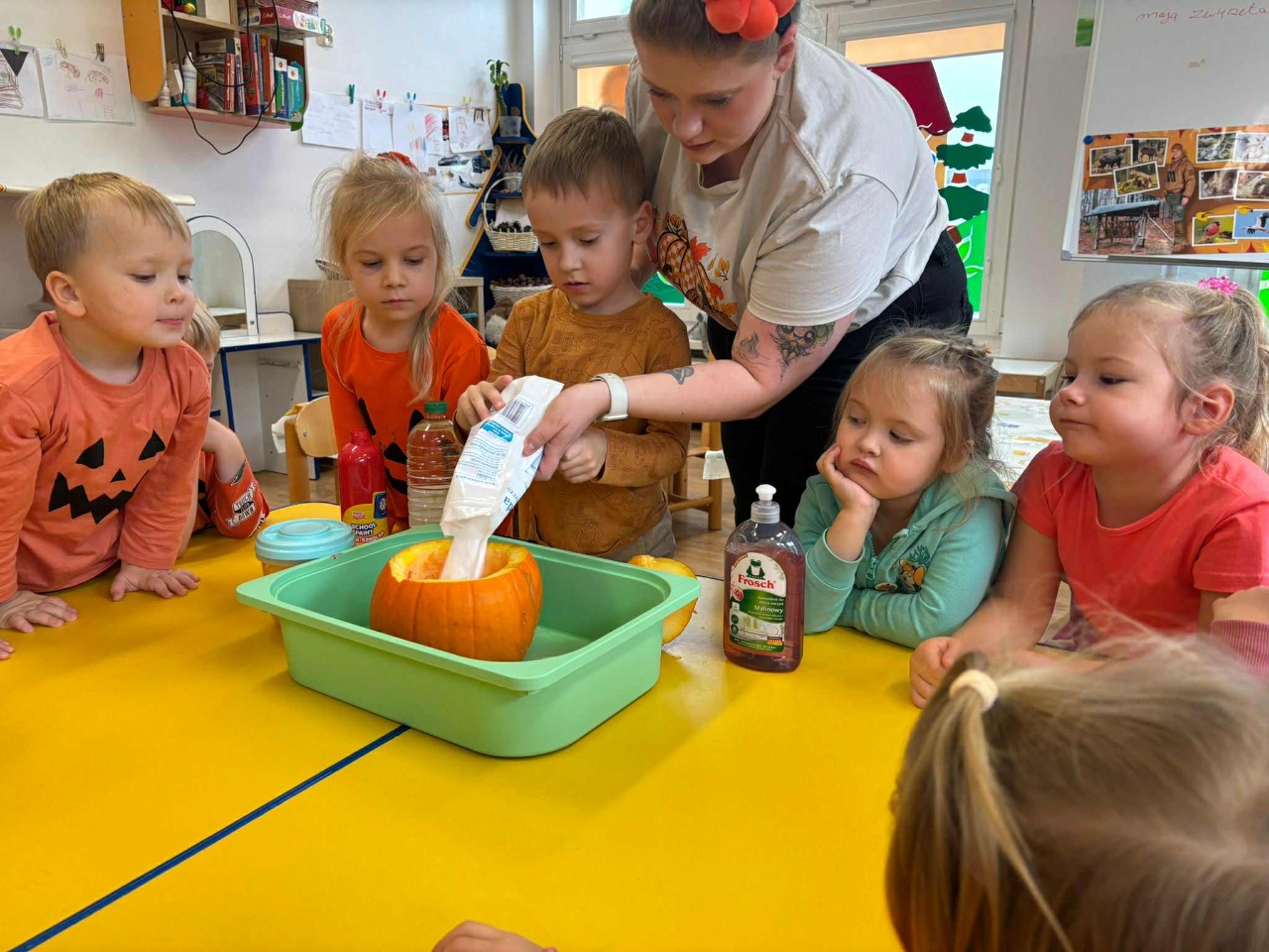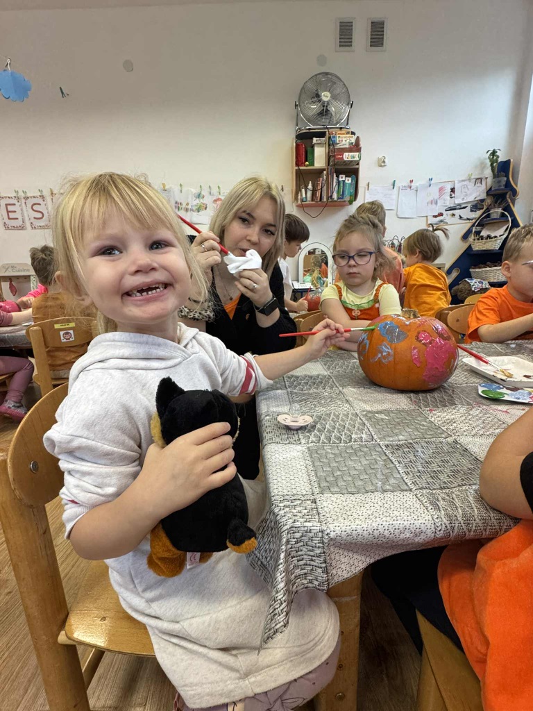 W naszym przedszkolu zrobiło się dziś wyjątkowo pomarańczowo i jesiennie! Świętowaliśmy Dzień Dyni, który przyniósł mnóstwo radości, uśmiechu i kreatywnej zabawy. Dzieci poznały różne odmiany dyni, dowiedziały się, do czego można ją wykorzystać, a także mogły spróbować pysznego ciasta dyniowego, które wszystkim bardzo smakowało!  Jedną z największych atrakcji dnia był pokaz jesiennej mody w wykonaniu naszych Ekoludków – mali modele i modelki zaprezentowali stroje inspirowane barwami jesieni i darami natury. Publiczność nagrodziła ich gromkimi brawami!