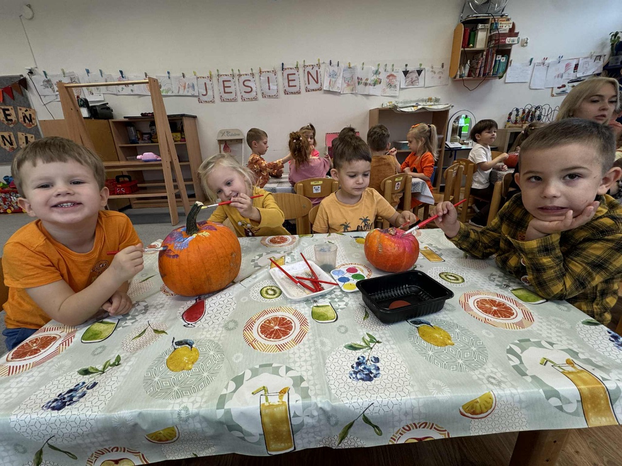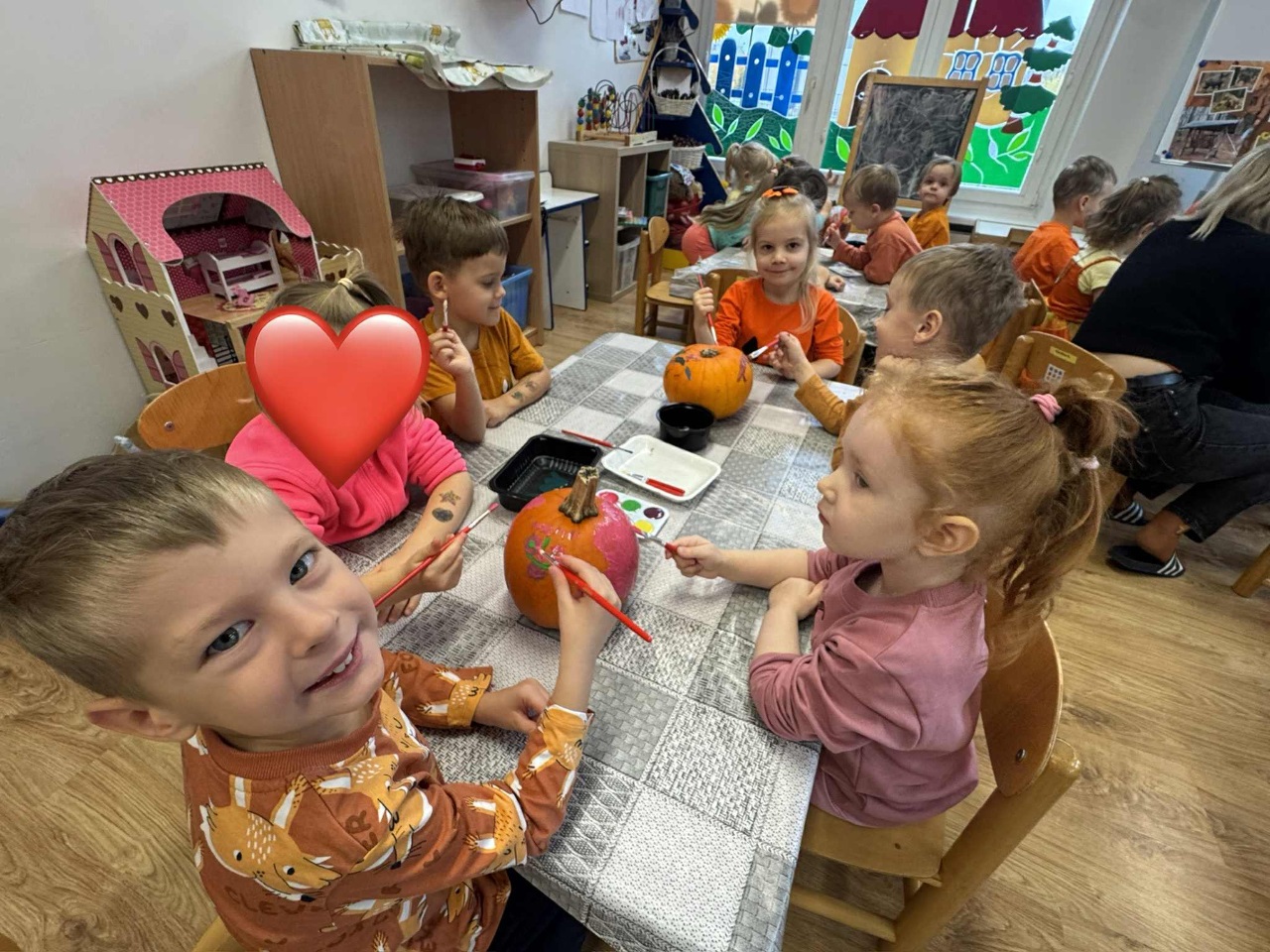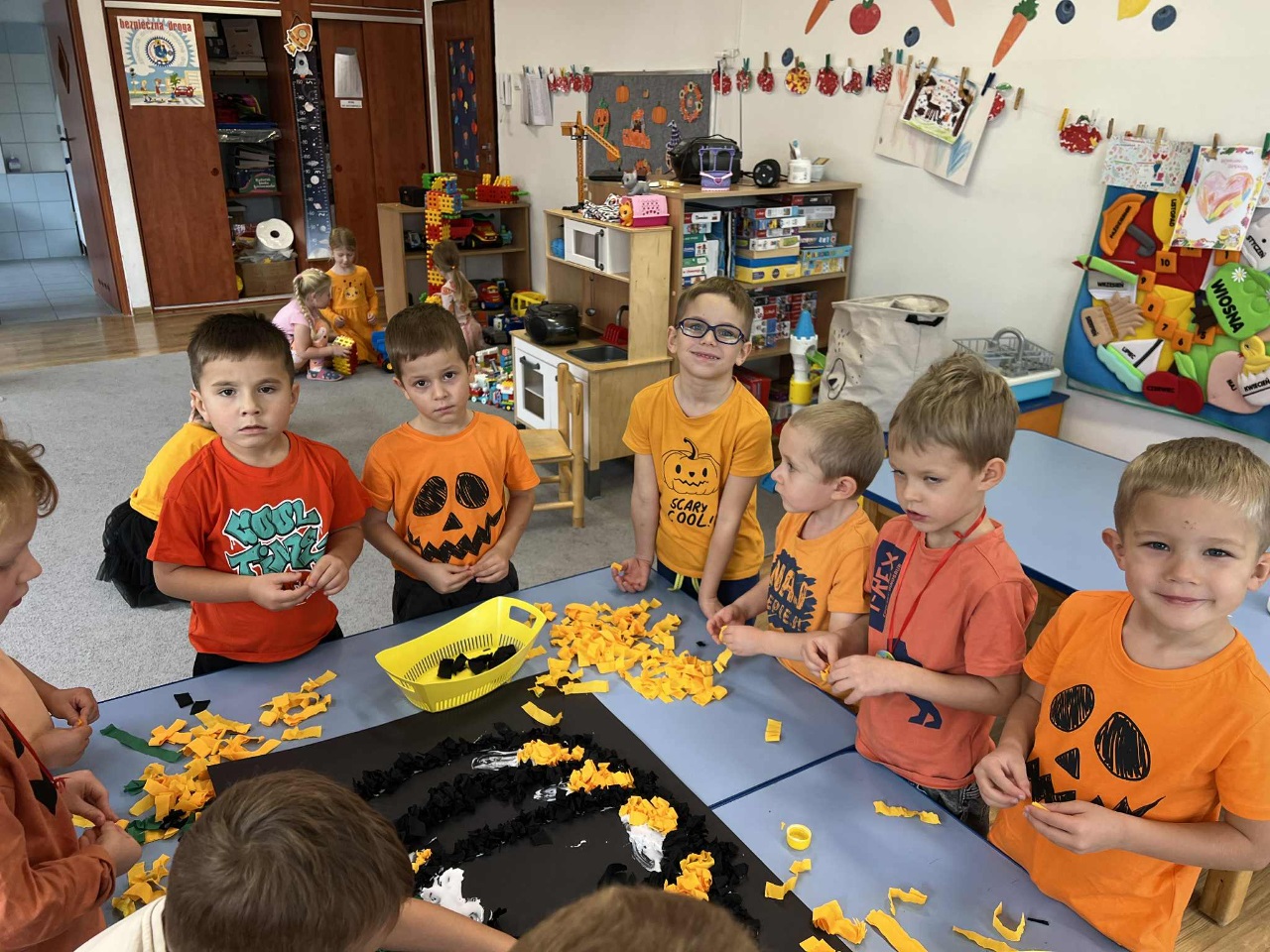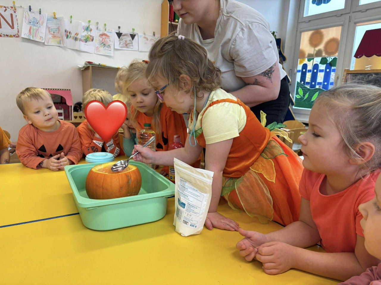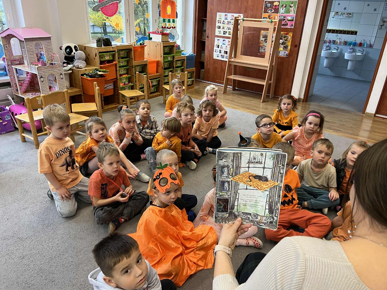 W naszym przedszkolu zrobiło się dziś wyjątkowo pomarańczowo i jesiennie! Świętowaliśmy Dzień Dyni, który przyniósł mnóstwo radości, uśmiechu i kreatywnej zabawy. Dzieci poznały różne odmiany dyni, dowiedziały się, do czego można ją wykorzystać, a także mogły spróbować pysznego ciasta dyniowego, które wszystkim bardzo smakowało!  Jedną z największych atrakcji dnia był pokaz jesiennej mody w wykonaniu naszych Ekoludków – mali modele i modelki zaprezentowali stroje inspirowane barwami jesieni i darami natury. Publiczność nagrodziła ich gromkimi brawami!