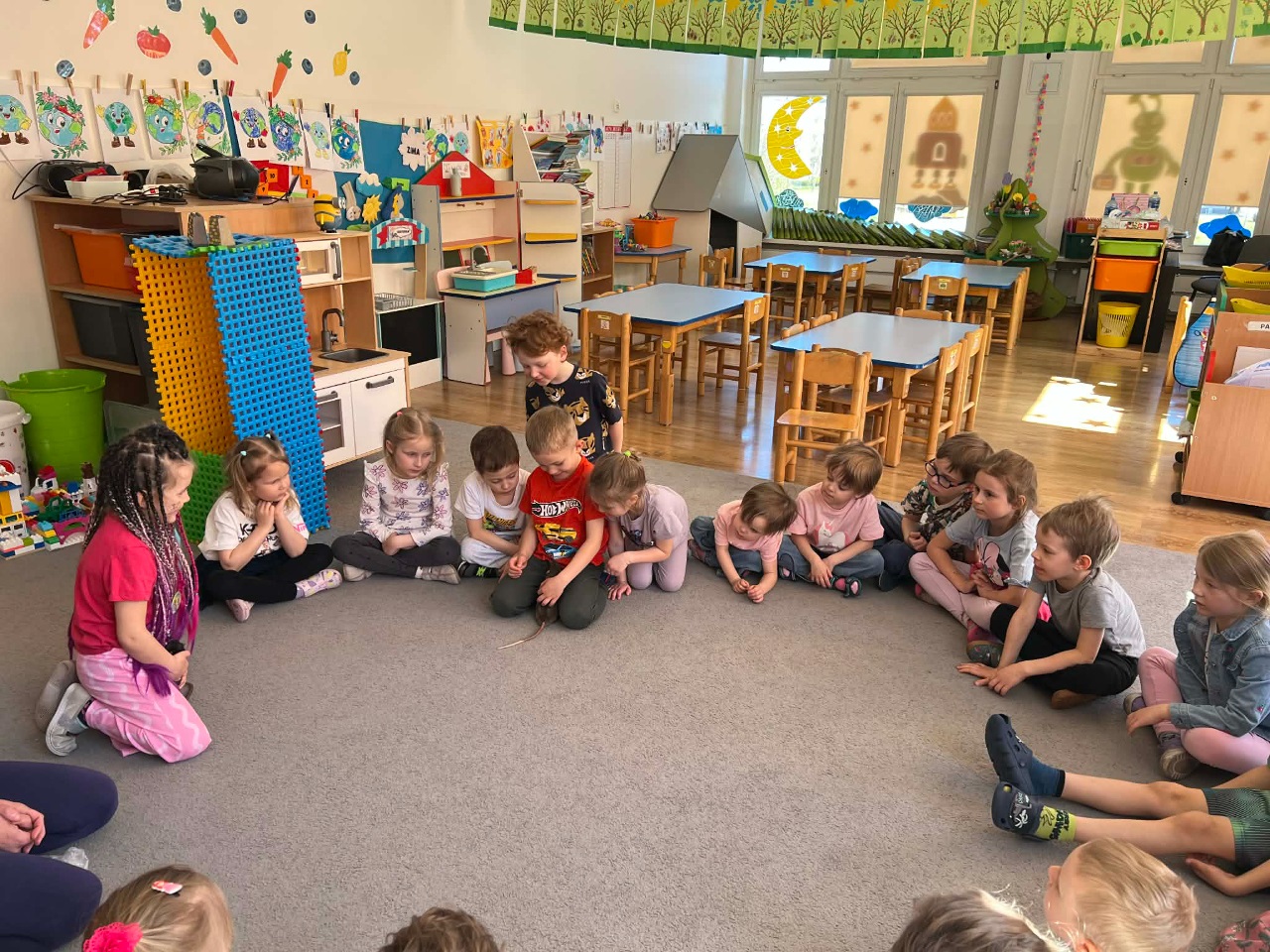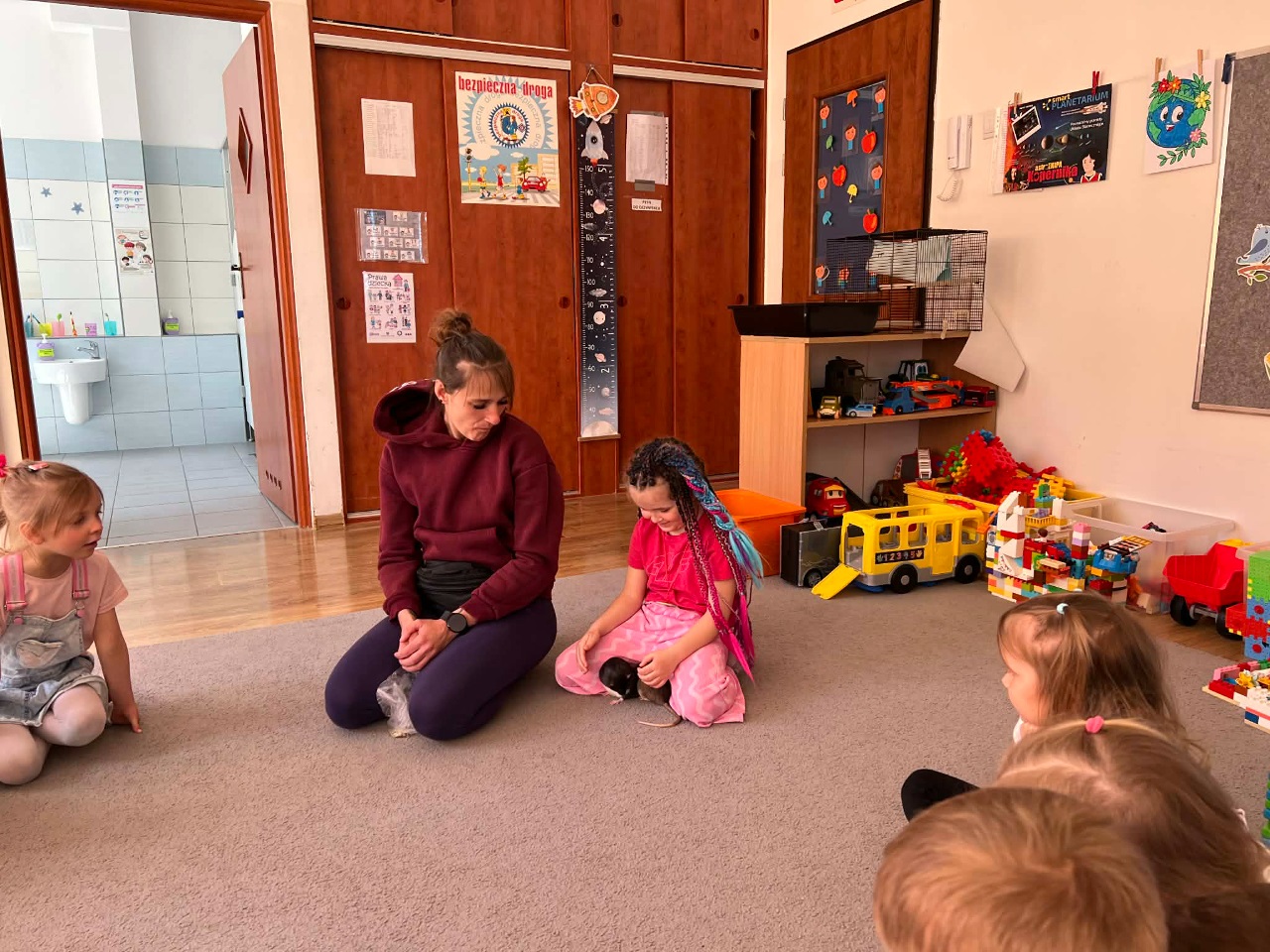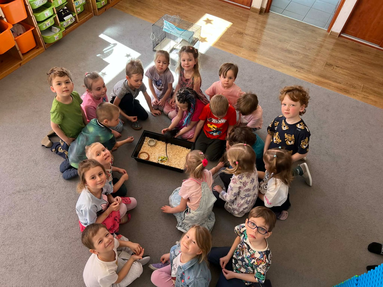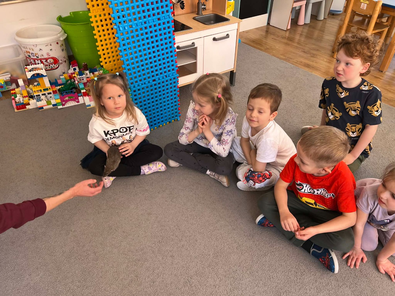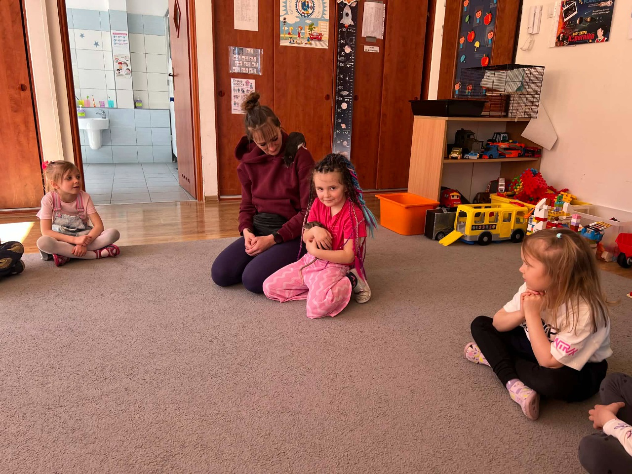 W dniu dziesiejszym grupę Kosmoludków odwiedziła mama Marysi, która przyszła do przedszkola z dwoma pupilami Marysi – Koko i Kajtkiem. Marysia opowiedziała swoim koleżankom i kolegom o zwyczajach oraz życiu szczurków.