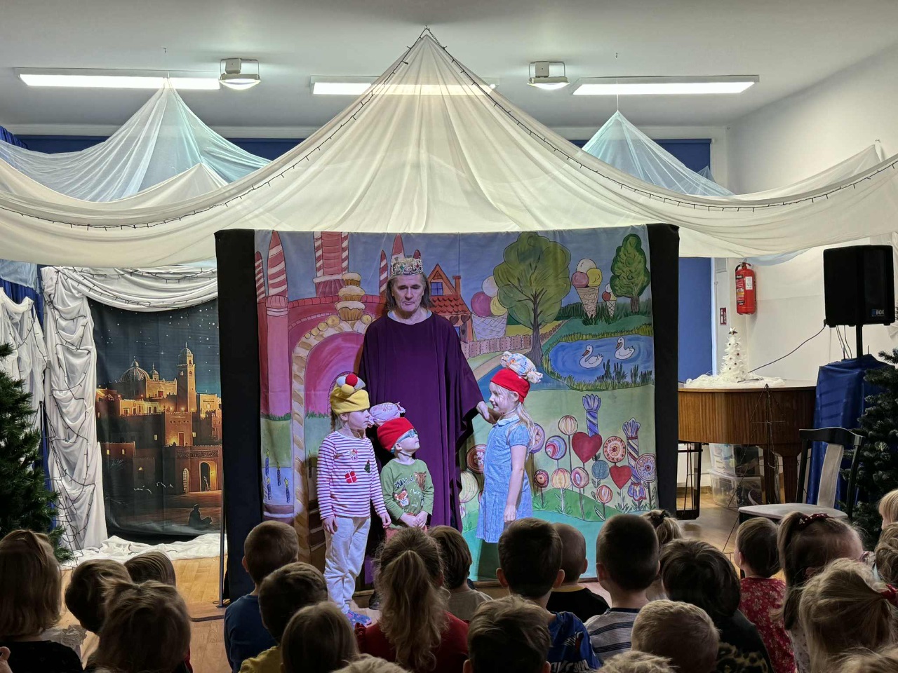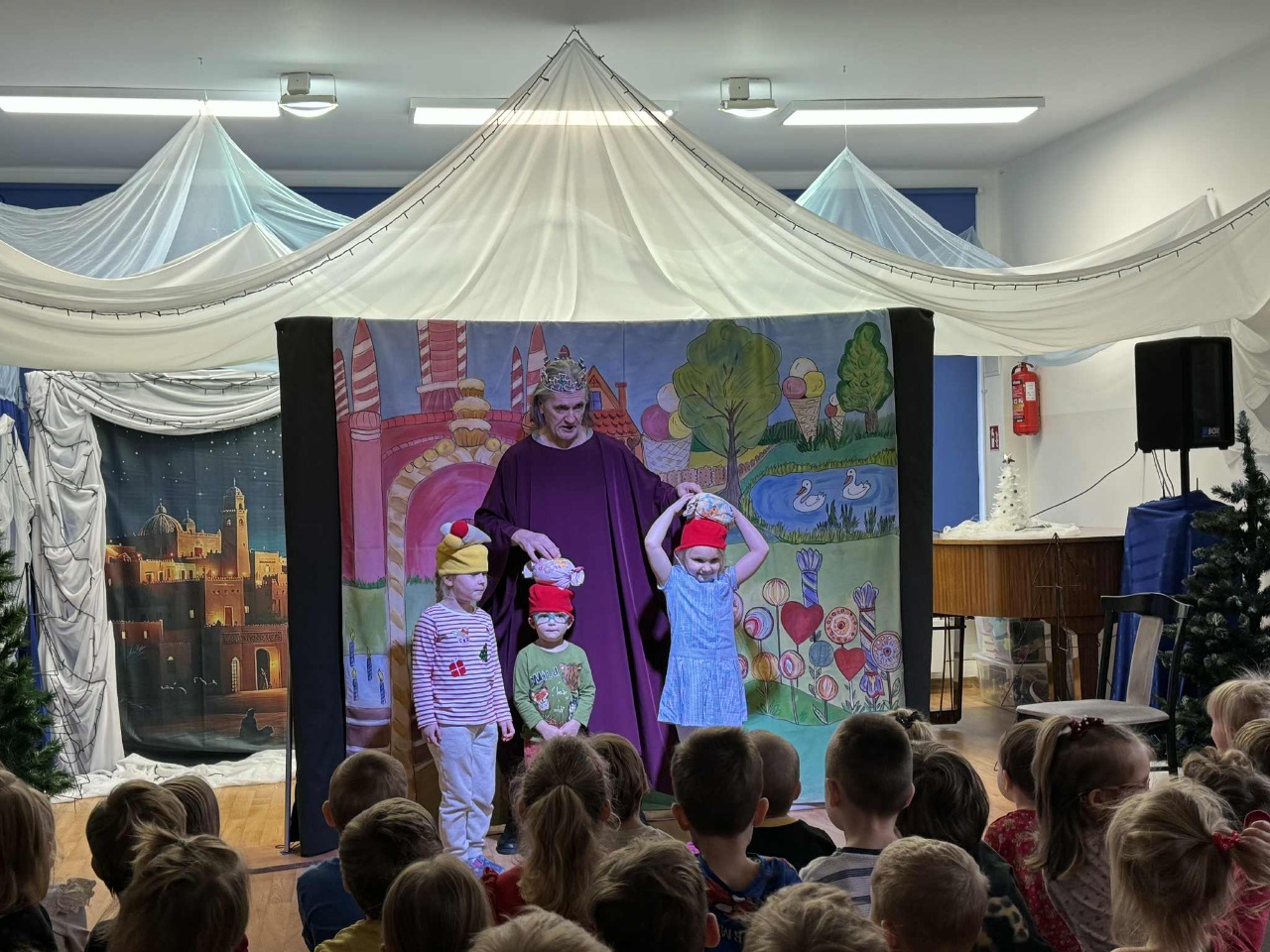 W dniu 15.12.2025 dzieci obejrzały przedstawienie teatralne pt. "Dziadek do orzechów" w wykonaniu aktorów z Teatru Duet.