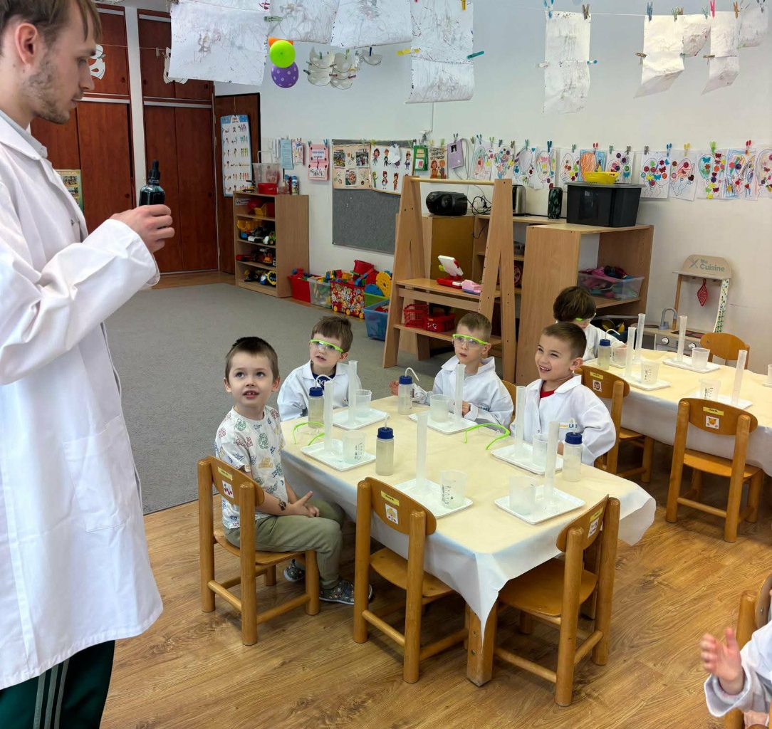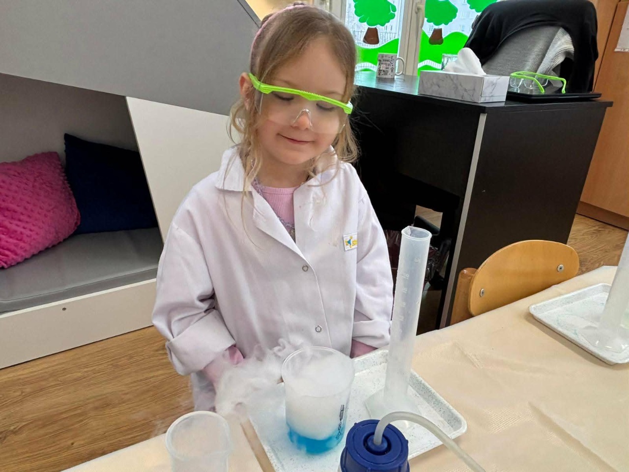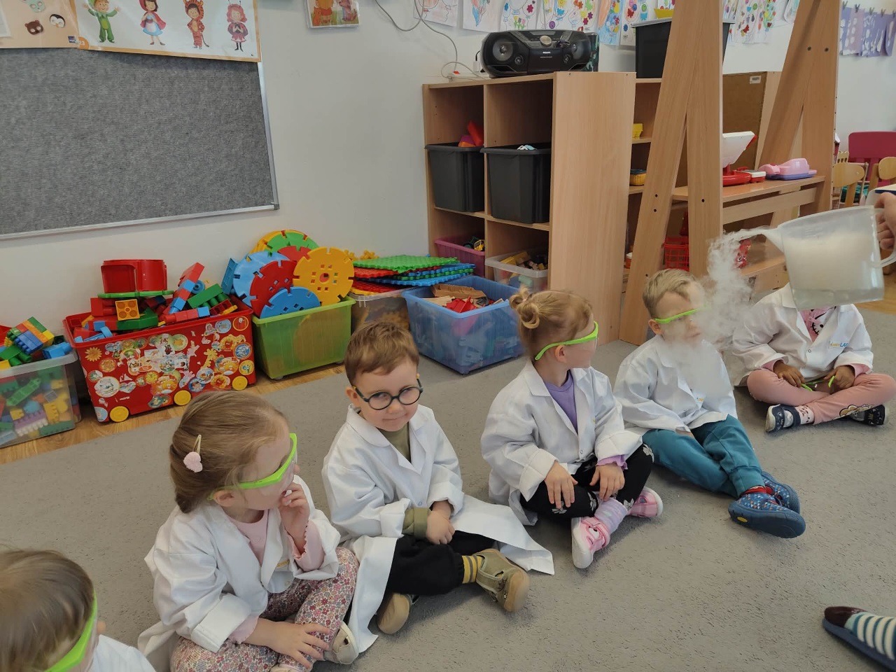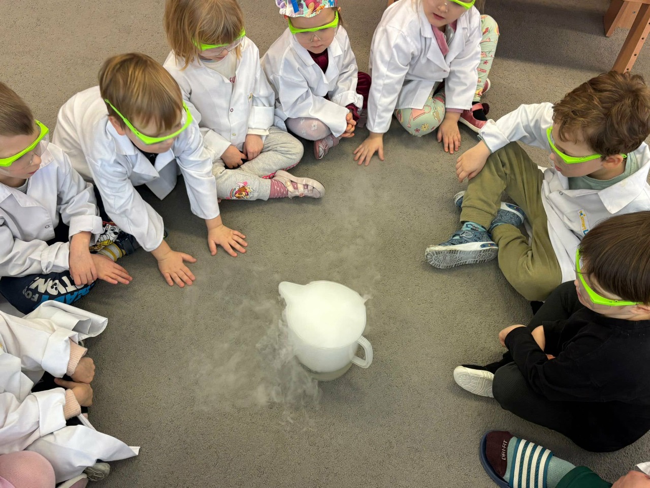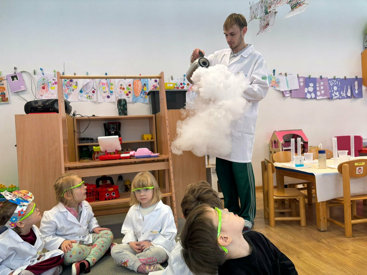 W dniu dziejszym Krasnoludki i Bajkoludki wzięły udział w warsztatach chemicznych zorganizowanych przez Centrum Edukacji SmartLab pt. "Suchy lód i magiczna chmurka".
