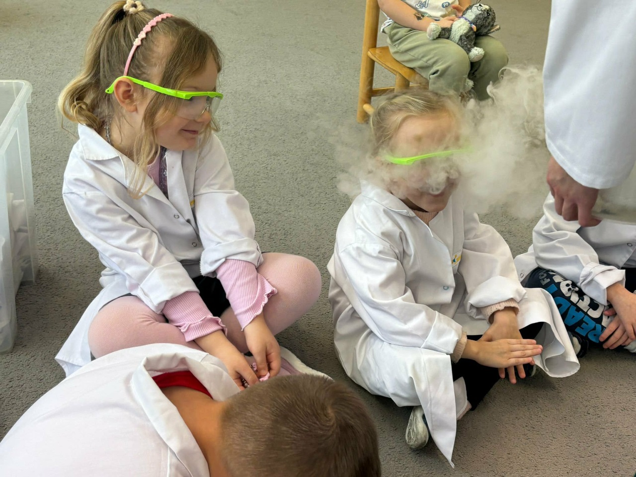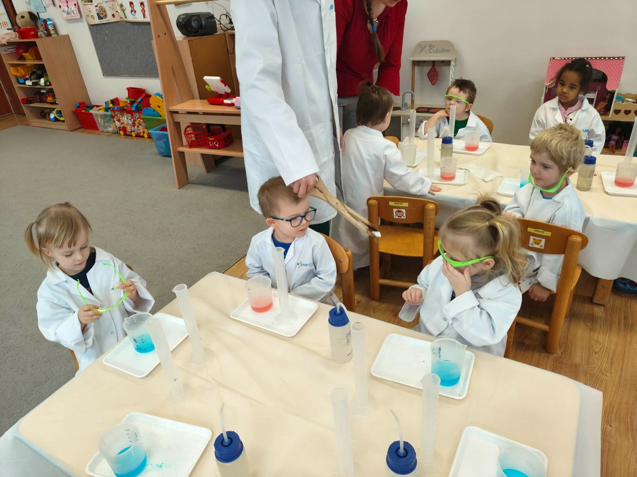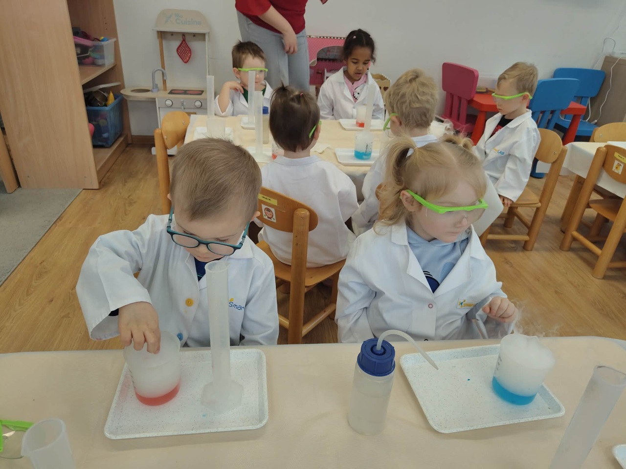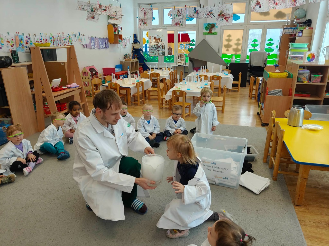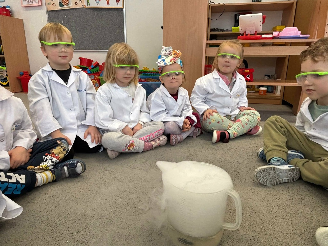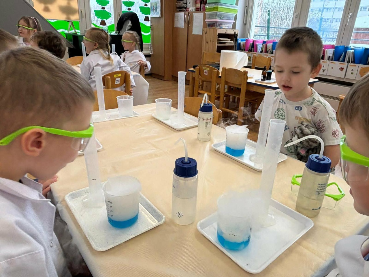 W dniu dziejszym Krasnoludki i Bajkoludki wzięły udział w warsztatach chemicznych zorganizowanych przez Centrum Edukacji SmartLab pt. "Suchy lód i magiczna chmurka".