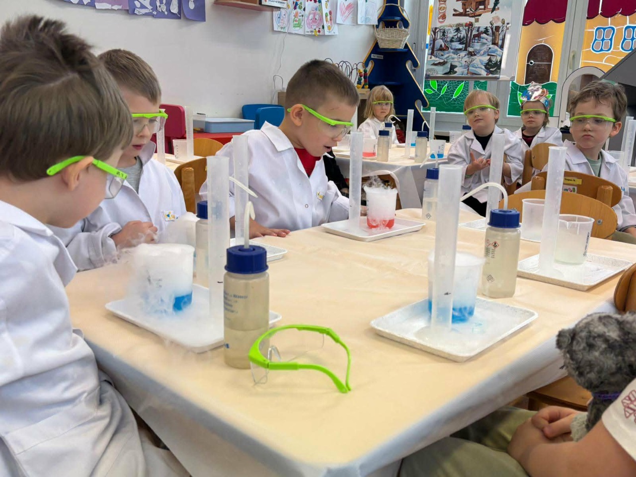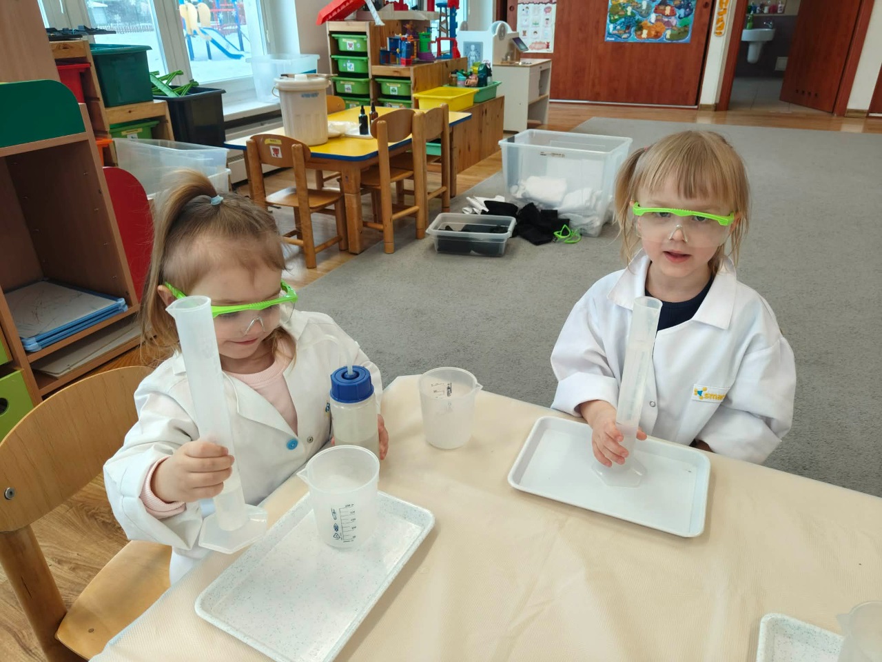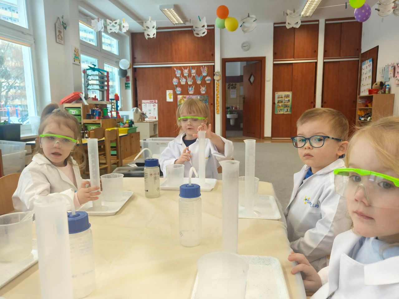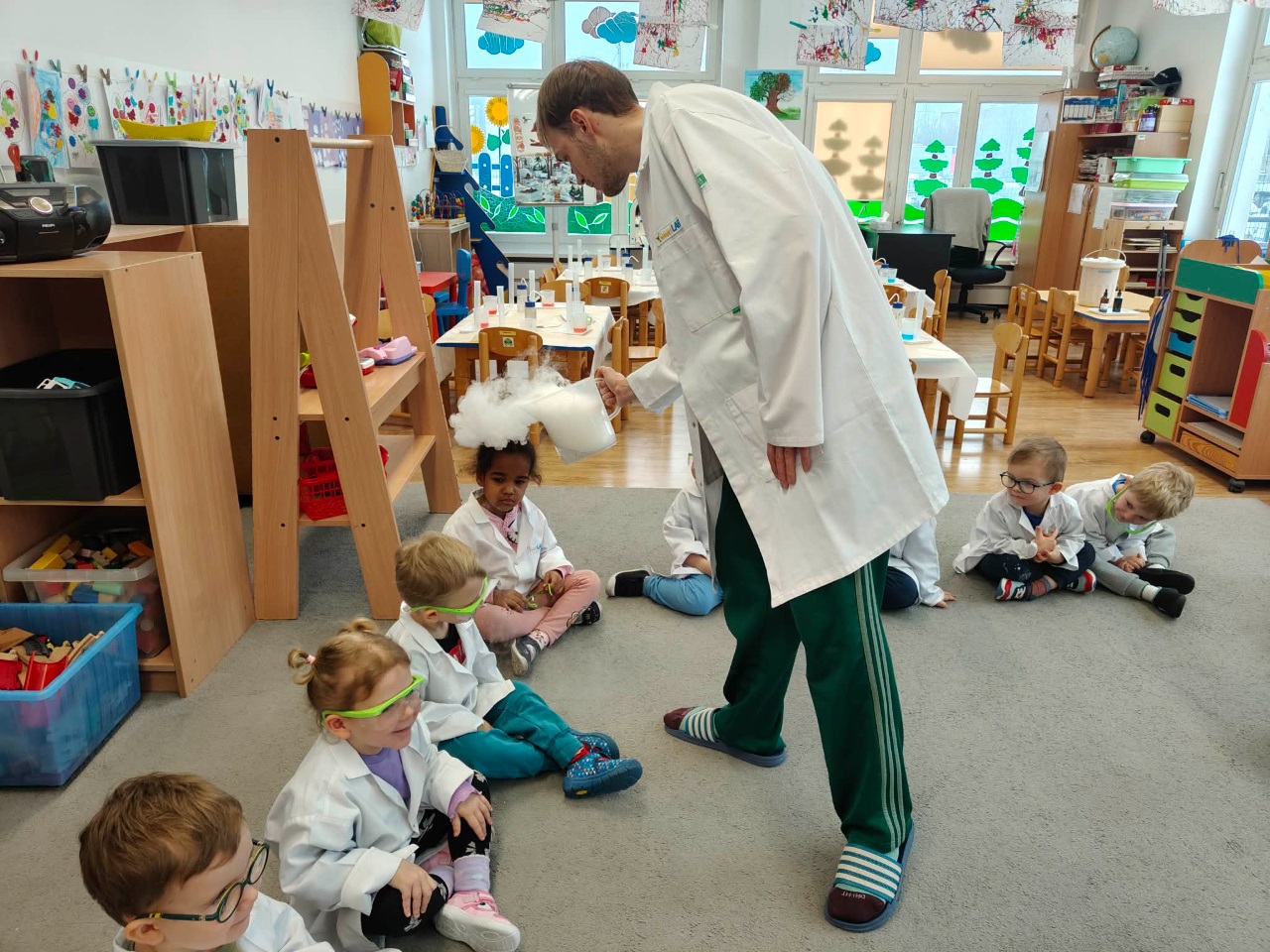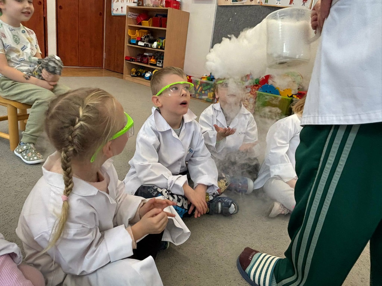 W dniu dziejszym Krasnoludki i Bajkoludki wzięły udział w warsztatach chemicznych zorganizowanych przez Centrum Edukacji SmartLab pt. "Suchy lód i magiczna chmurka".