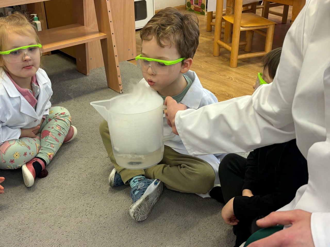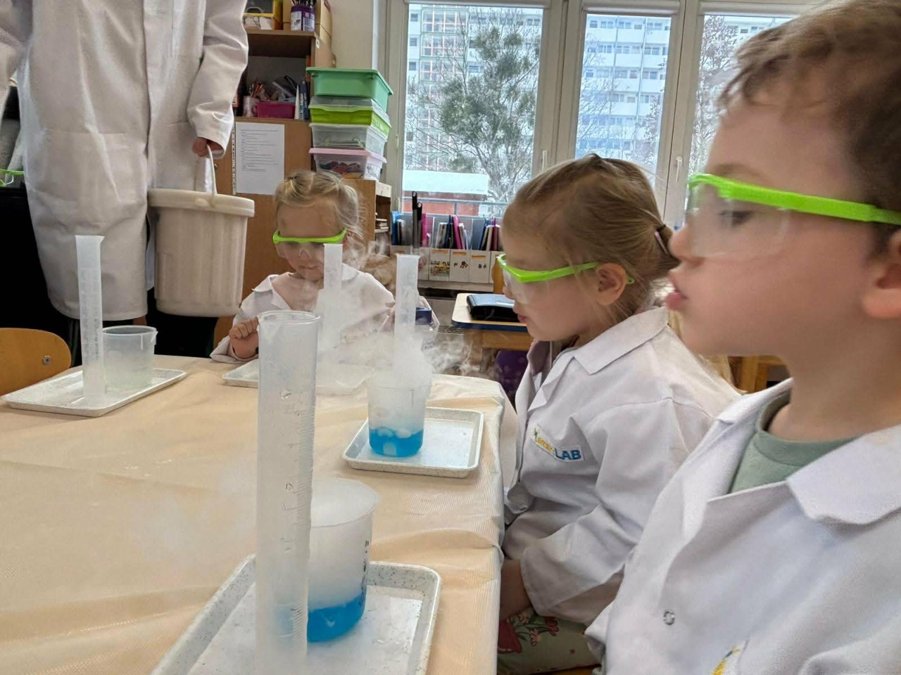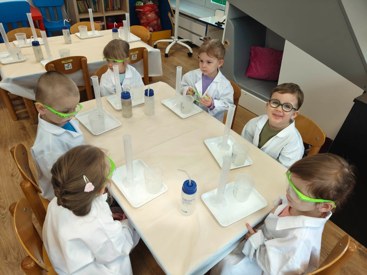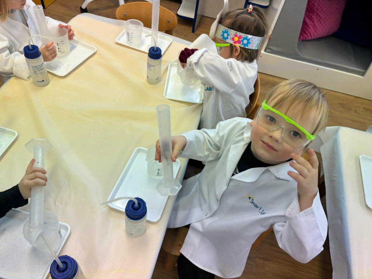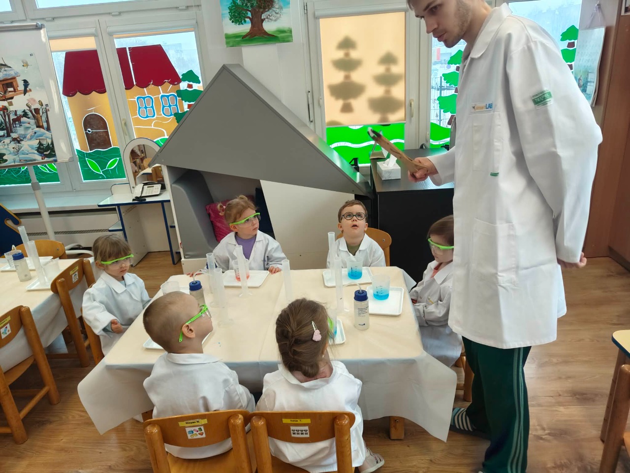 W dniu dziejszym Krasnoludki i Bajkoludki wzięły udział w warsztatach chemicznych zorganizowanych przez Centrum Edukacji SmartLab pt. "Suchy lód i magiczna chmurka".
