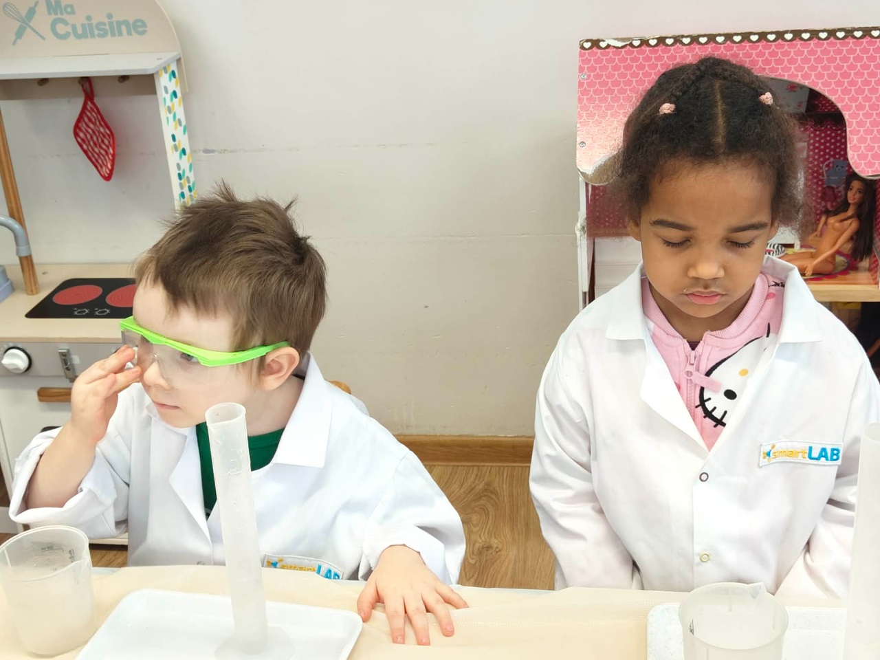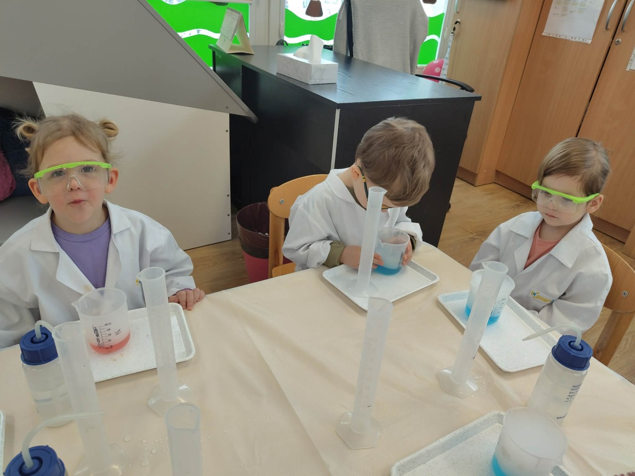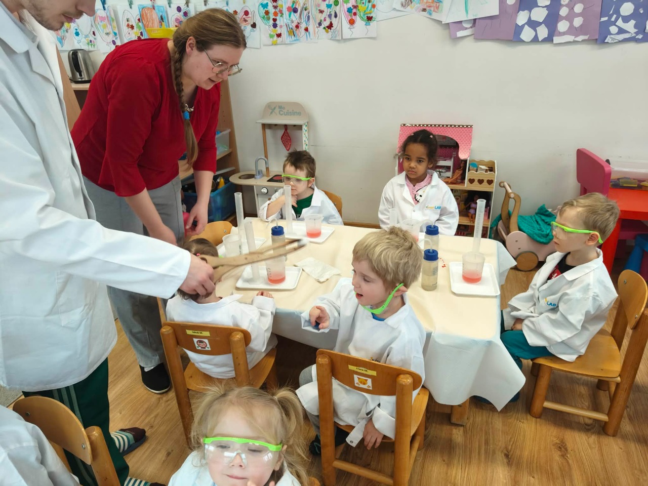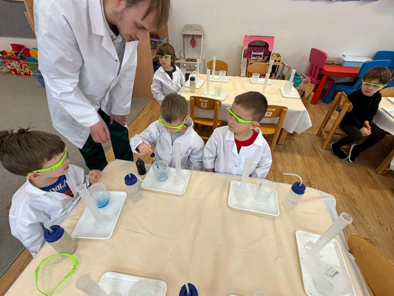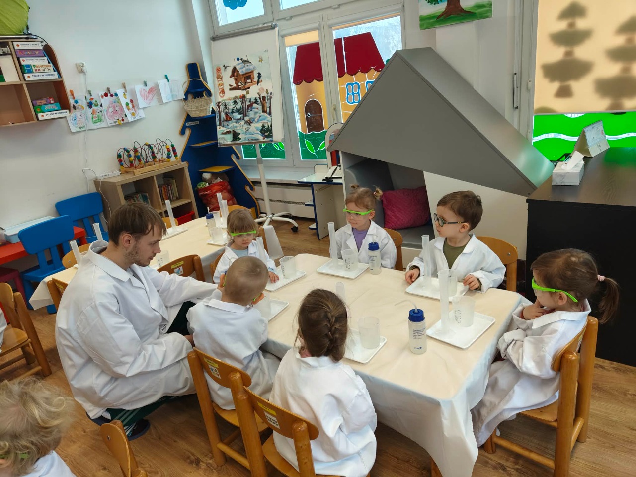 W dniu dziejszym Krasnoludki i Bajkoludki wzięły udział w warsztatach chemicznych zorganizowanych przez Centrum Edukacji SmartLab pt. "Suchy lód i magiczna chmurka".