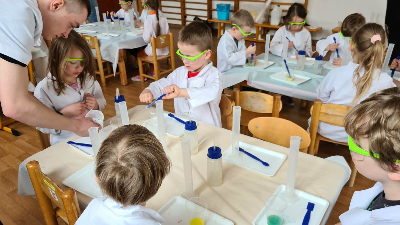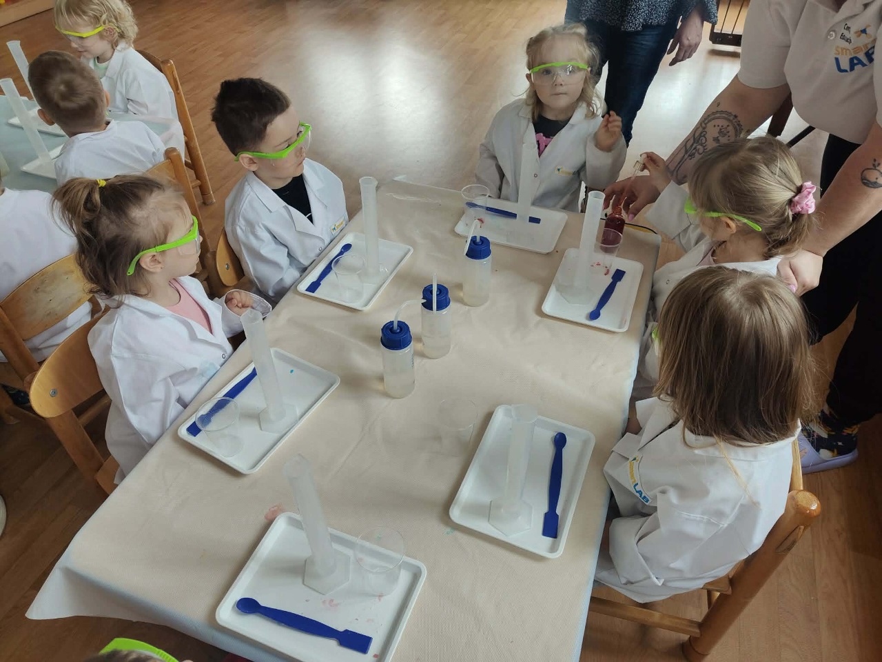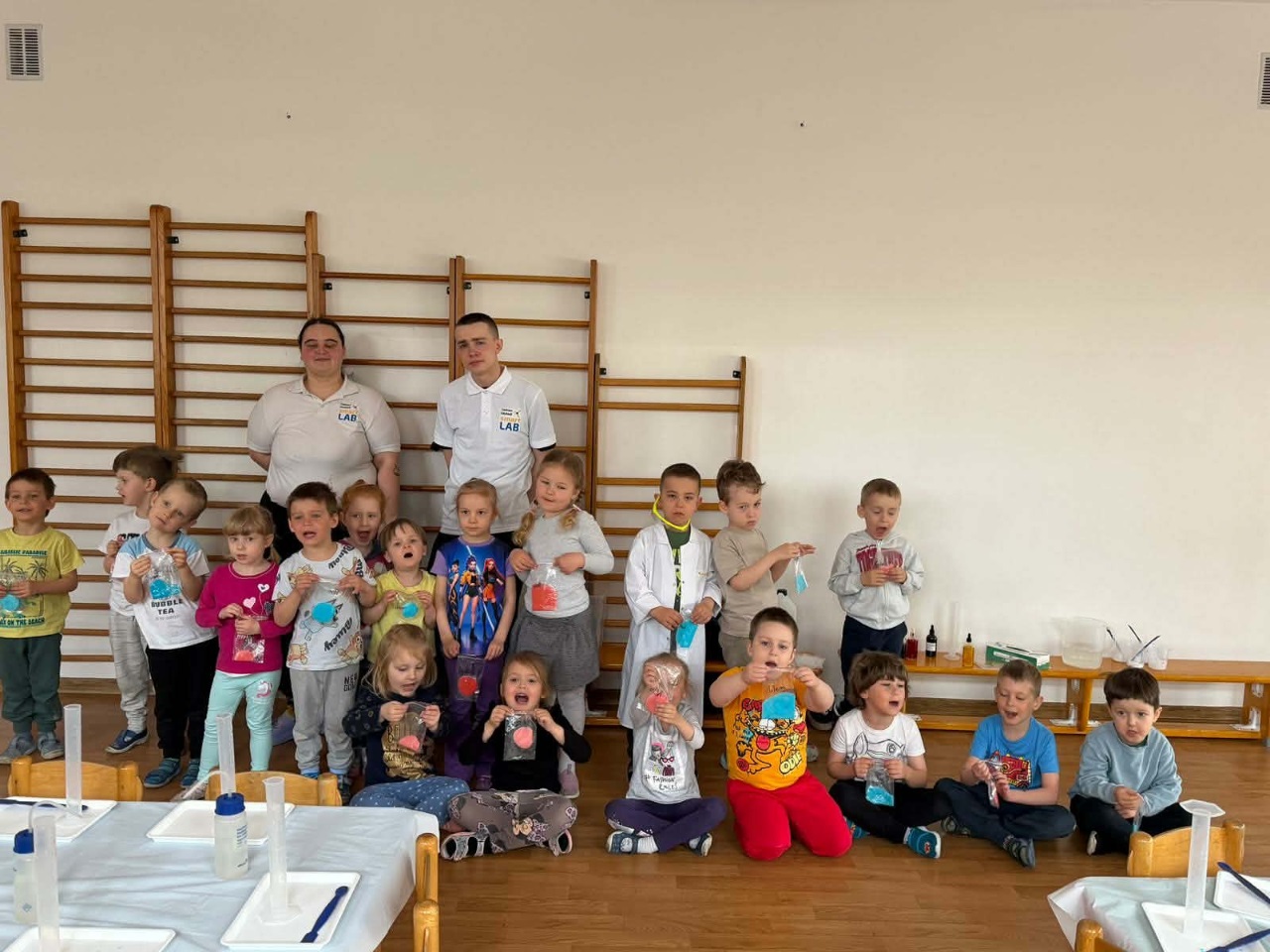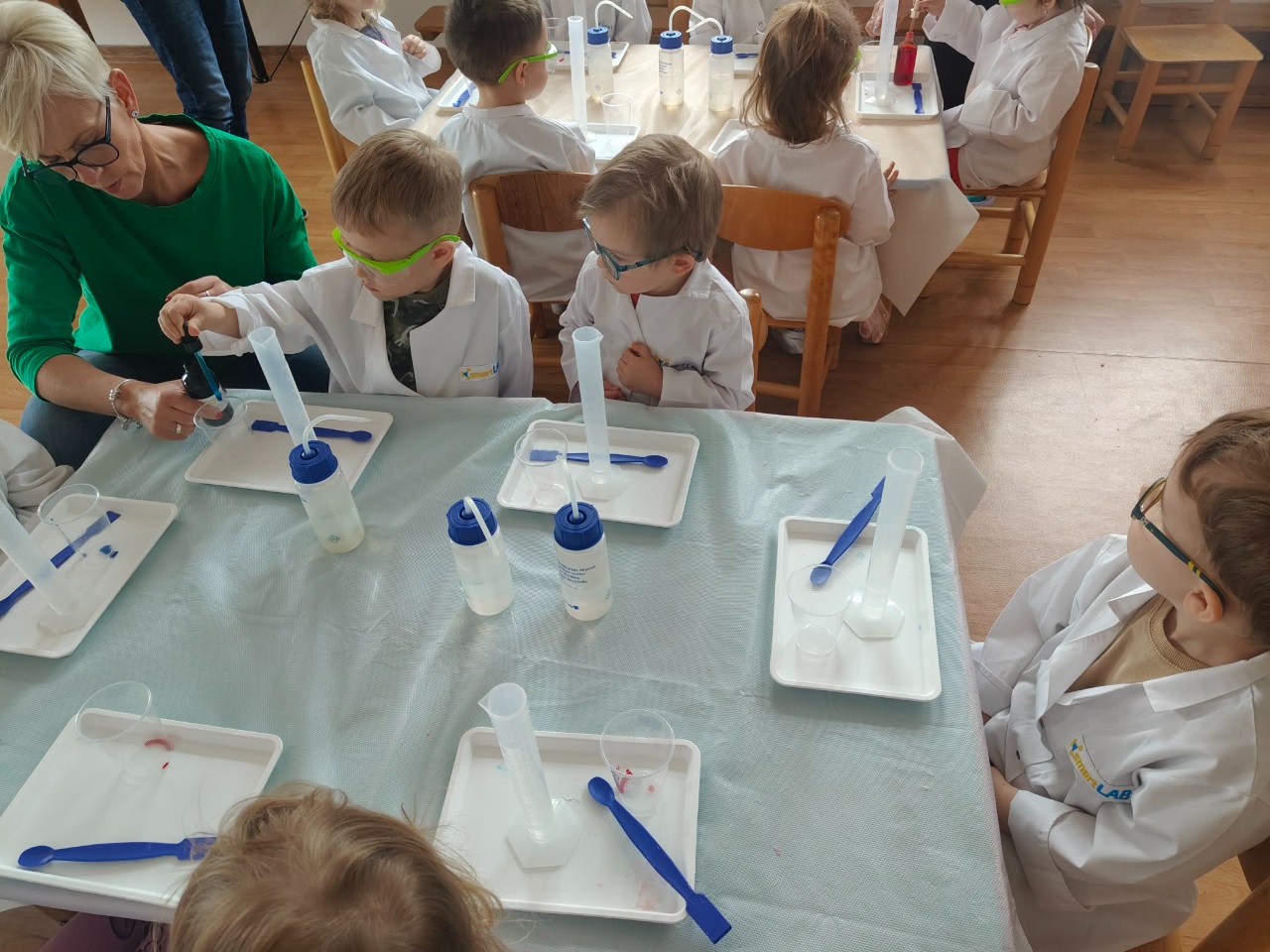 W dniu 17 kwietnia dzieci z naszego przedszkola wzięły udział w zorganizowanych przez Centrum Edukacji SmartLab warsztatach pt. "Szalona Polimerowa Piłeczka czyli zrób to sam!"