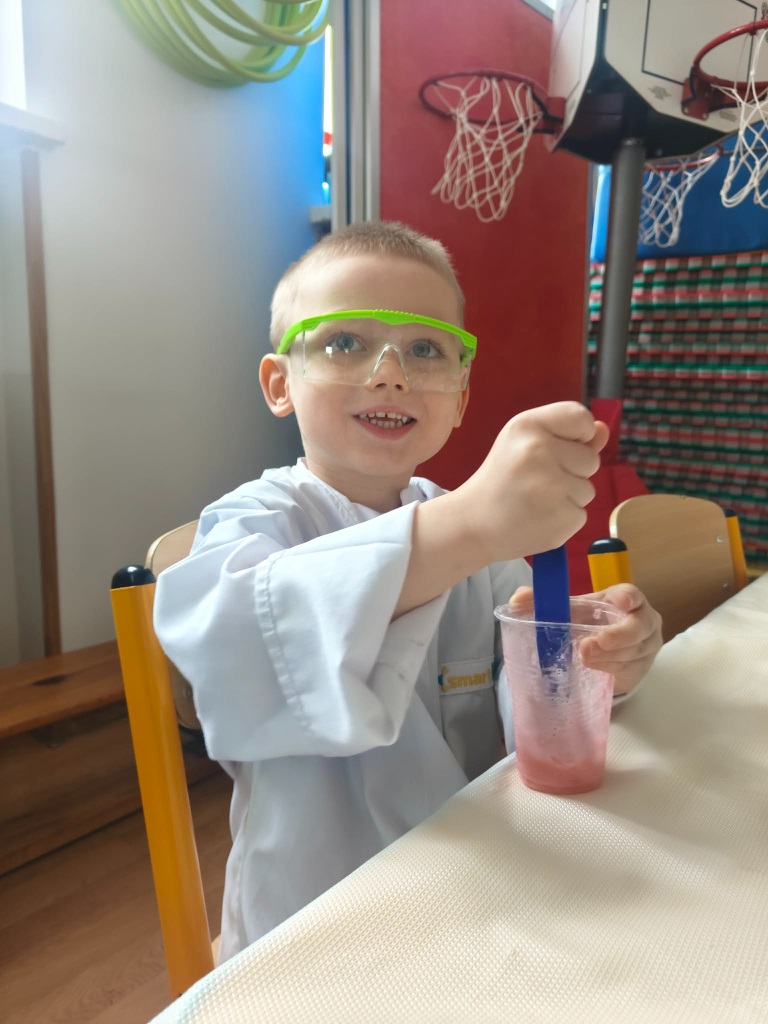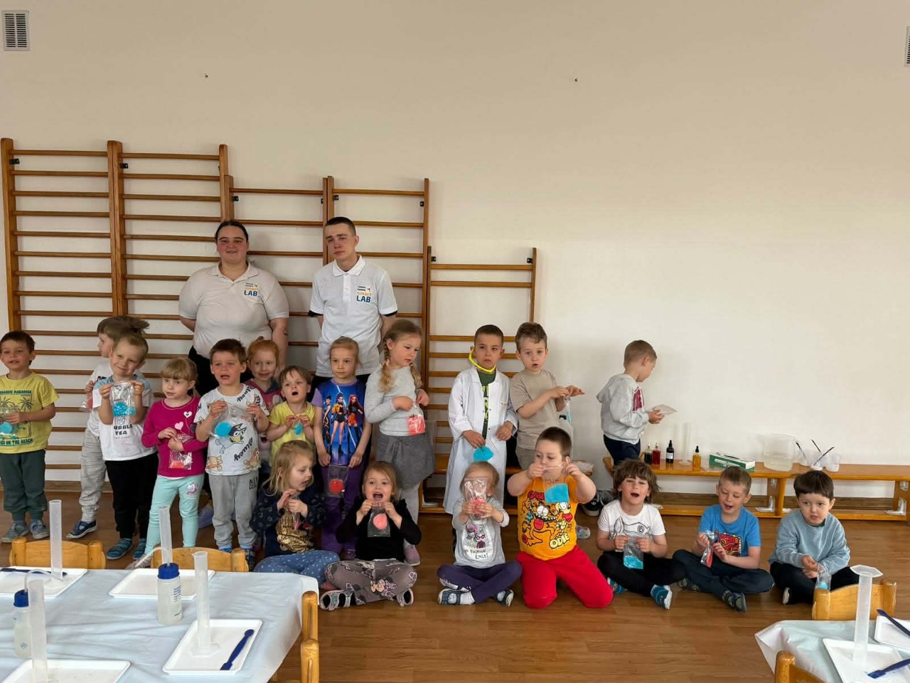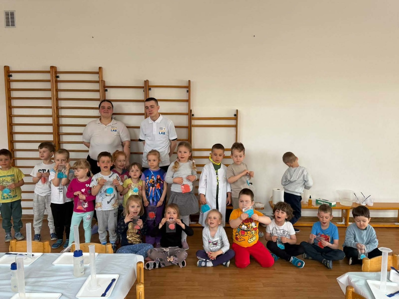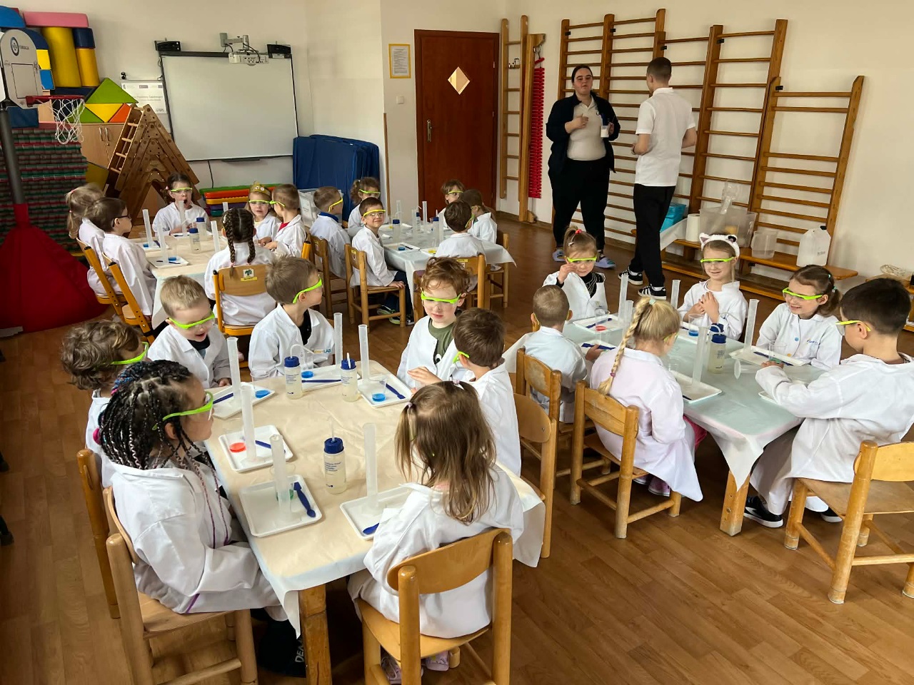 W dniu 17 kwietnia dzieci z naszego przedszkola wzięły udział w zorganizowanych przez Centrum Edukacji SmartLab warsztatach pt. "Szalona Polimerowa Piłeczka czyli zrób to sam!"