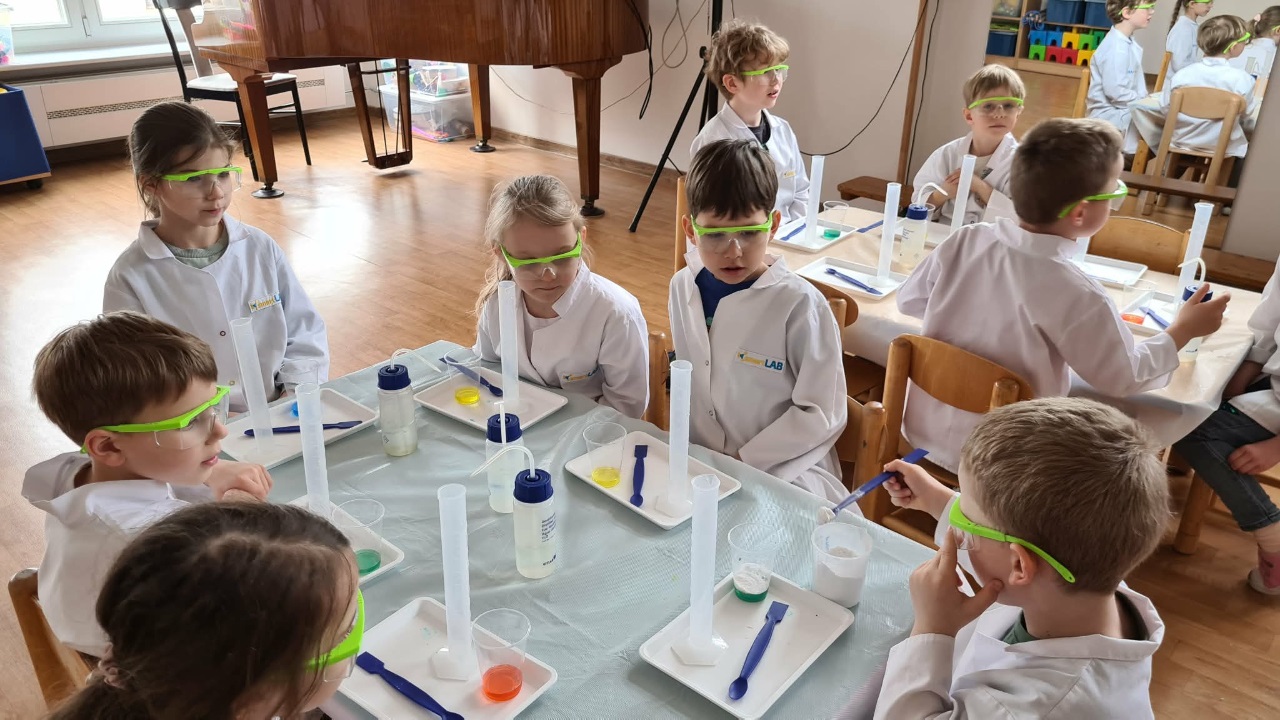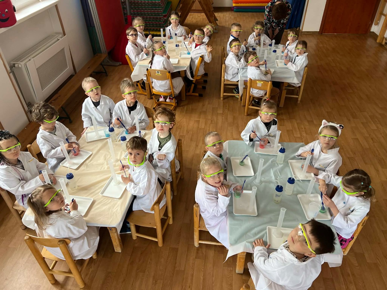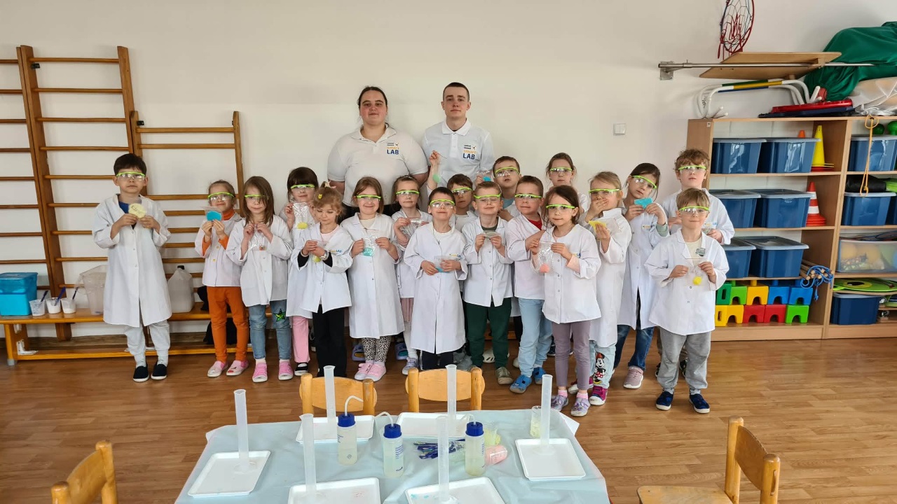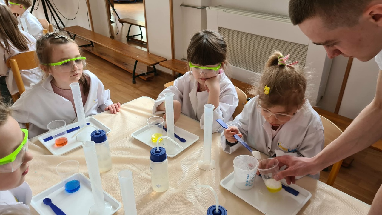 W dniu 17 kwietnia dzieci z naszego przedszkola wzięły udział w zorganizowanych przez Centrum Edukacji SmartLab warsztatach pt. "Szalona Polimerowa Piłeczka czyli zrób to sam!"