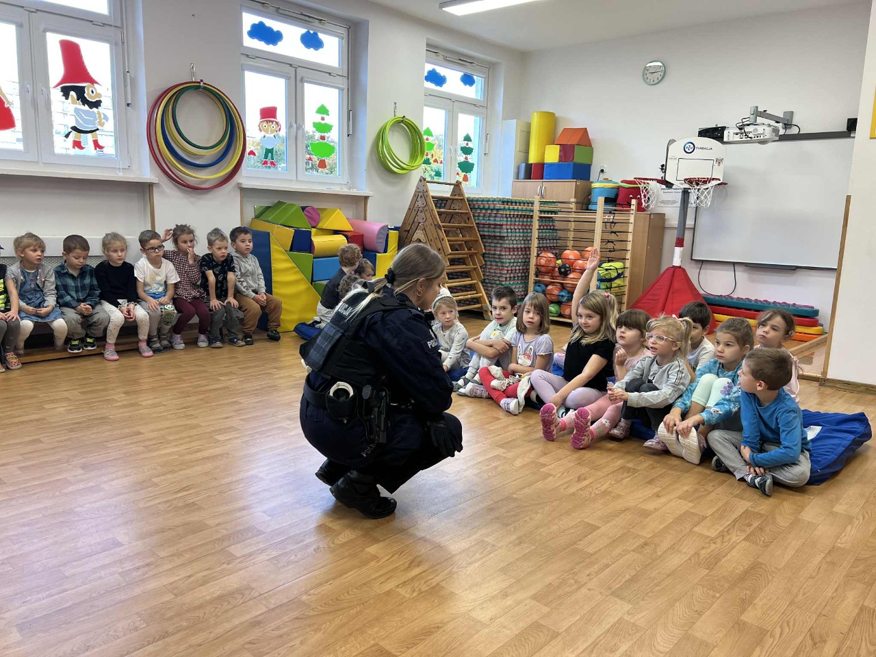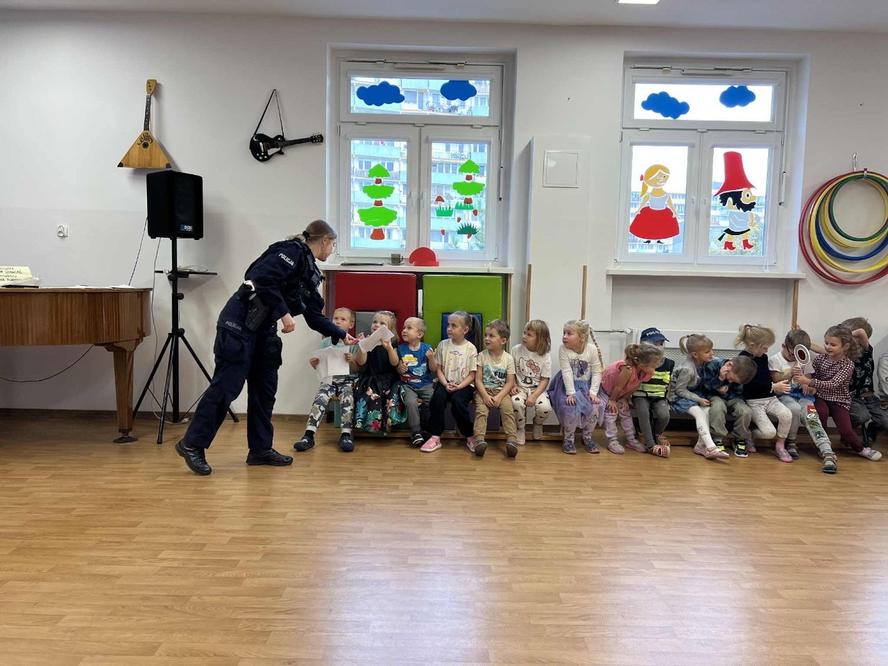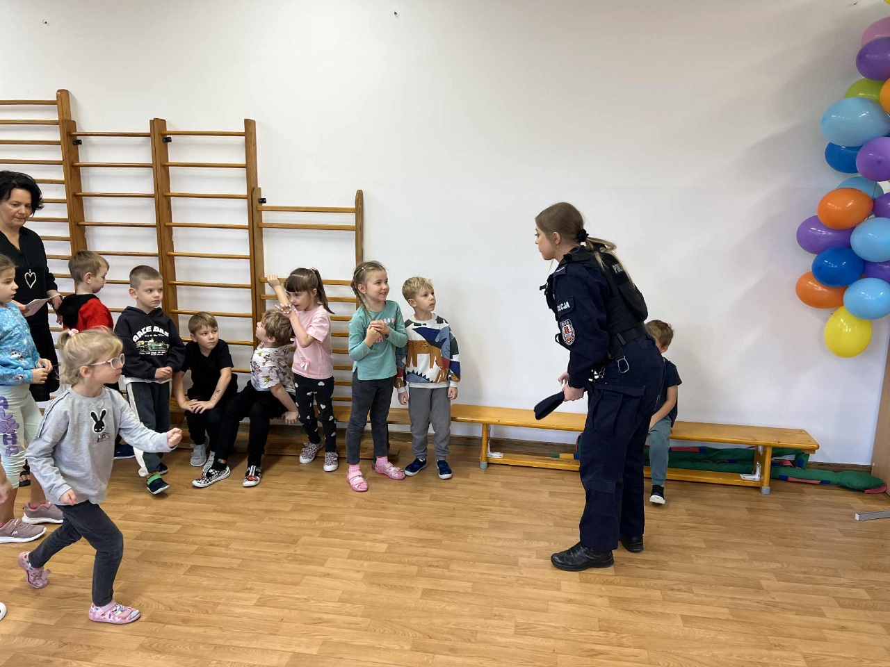 W dniu dzisiejszym odbyły się w naszym przedszkolu zajęcia edukacyjne z panią policjantką. Tematem przewodnim było bezpieczeństwo, zasady ruchu drogowego, zachowanie w sytuacjach zagrożenia oraz budowanie pozytywnych skojarzeń z Policją. Podczas spotkania dzieci poznały elementy umundurowania i sprzęt policyjny.