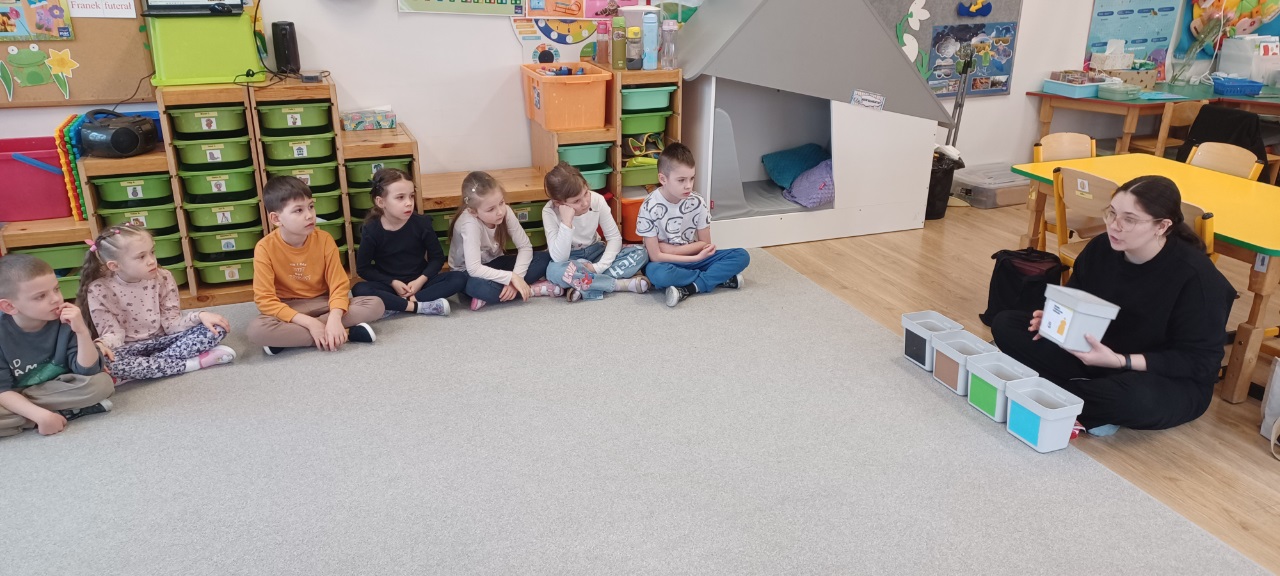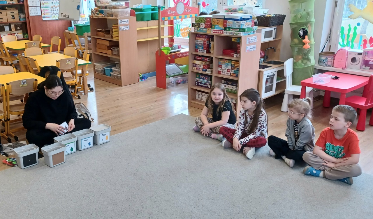 W dniu dzisiejszym w grupie IV odbyły się zajęcia ekologiczne pt. "Edukacja-segregacja". Zajęcia przeprowadziła pani z Fundacji Generacja.