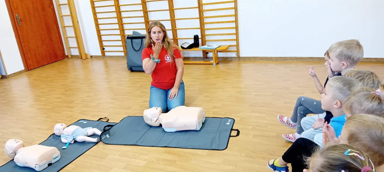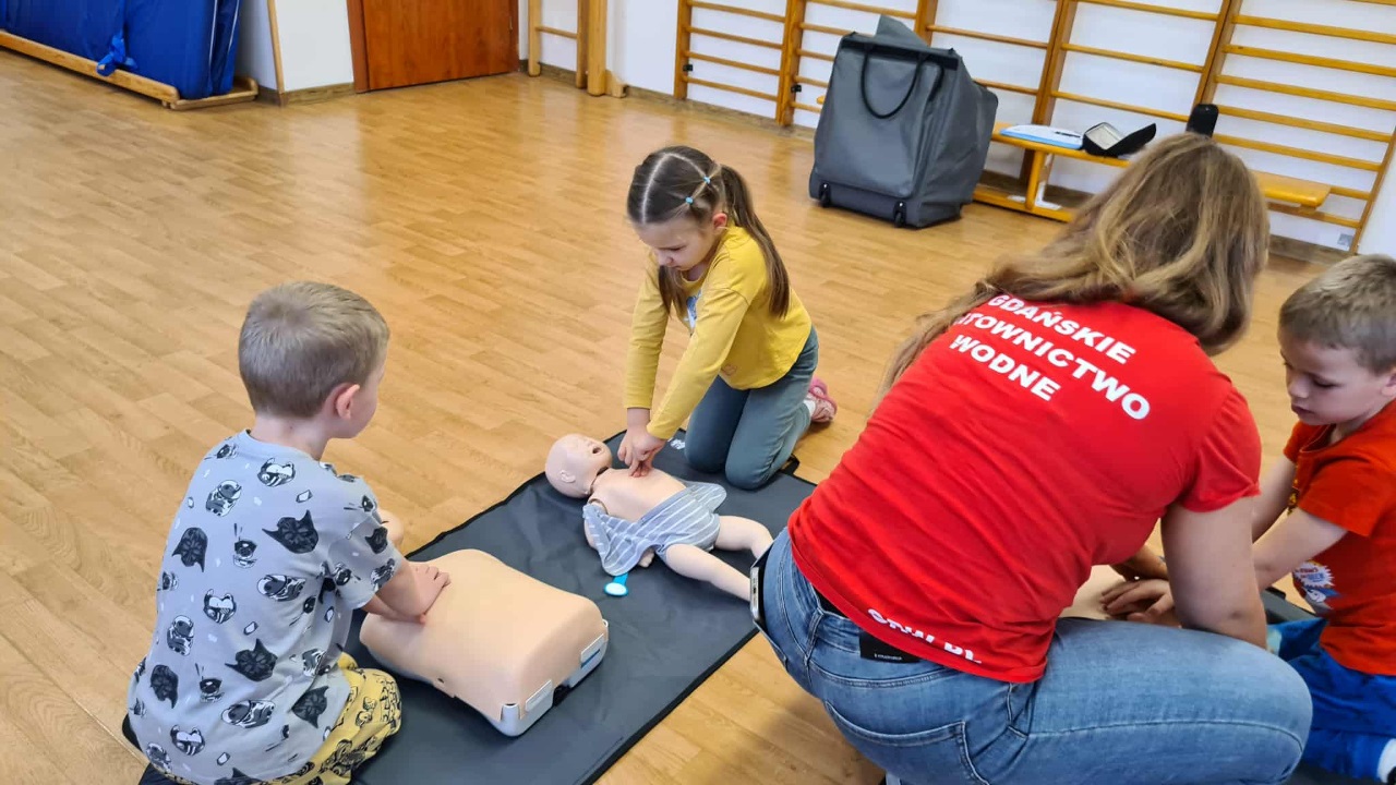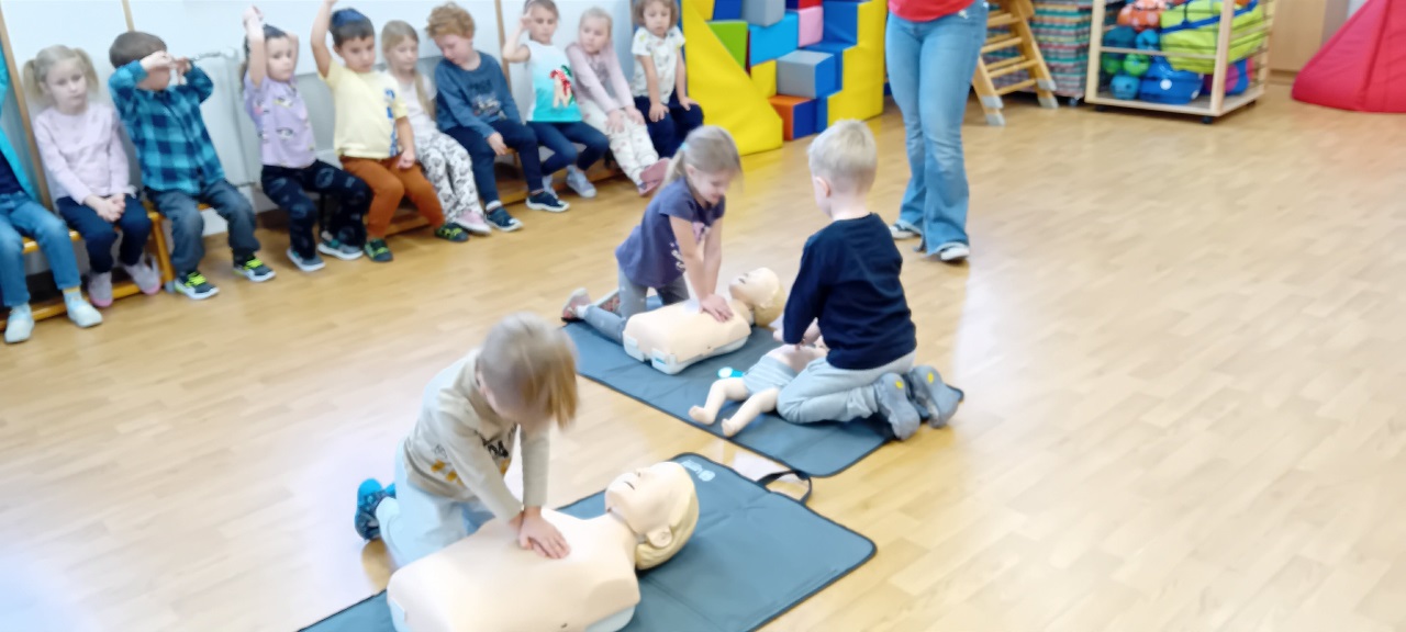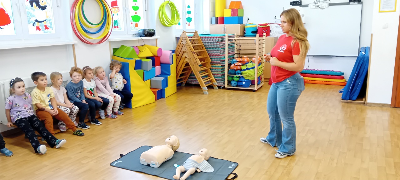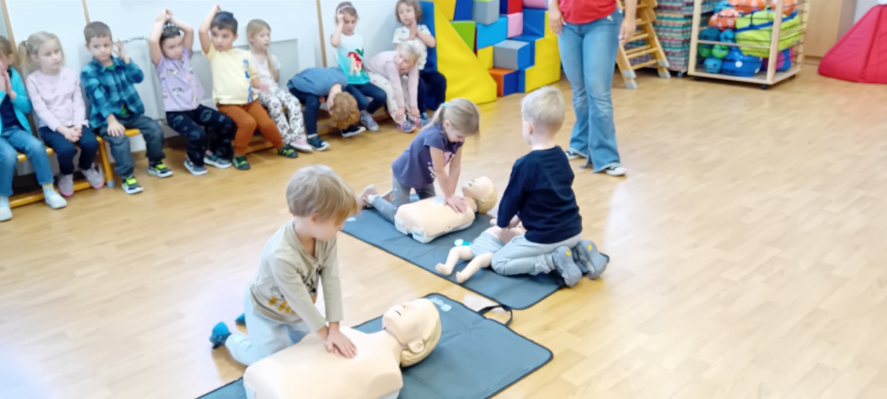 W naszym przedszkolu odbyły się wyjątkowe zajęcia z udzielania pierwszej pomocy przedmedycznej, które poprowadziła ratownik Pani Maja z Gdańskiego Ratownictwa Wodnego. Dzieci wzięły udział w pokazach i ćwiczeniach praktycznych, podczas których uczyły się, jak reagować w sytuacjach zagrożenia oraz jak wezwać pomoc. Przedszkolaki miały okazję sprawdzić się w roli małych ratowników, poznały podstawowe zasady bezpieczeństwa. Zajęcia były nie tylko pouczające, ale też pełne radości i dobrej zabawy.