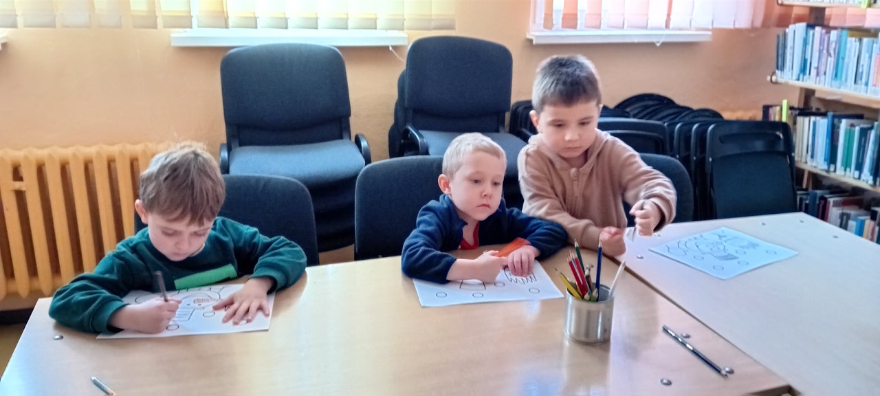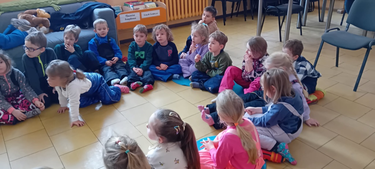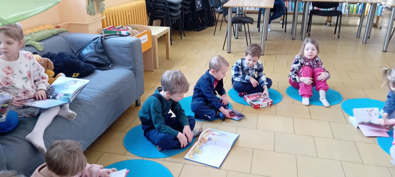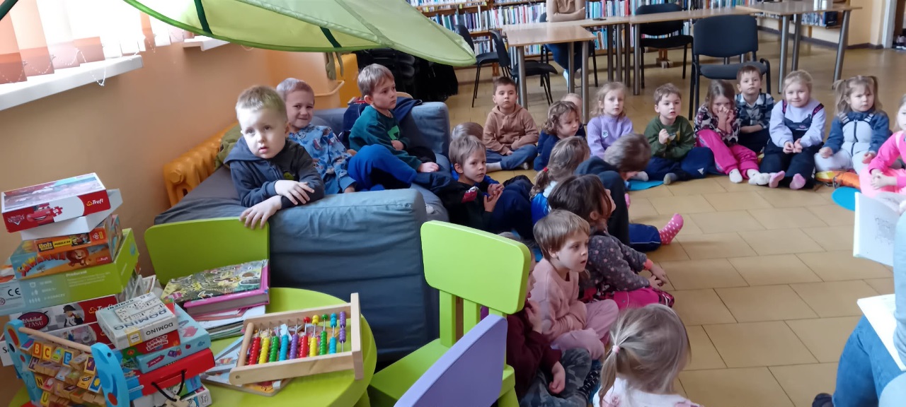 Kosmoludki w bibliotece na zajęciach edukacyjnych "Zima wokół nas" - Przedszkole nr 62