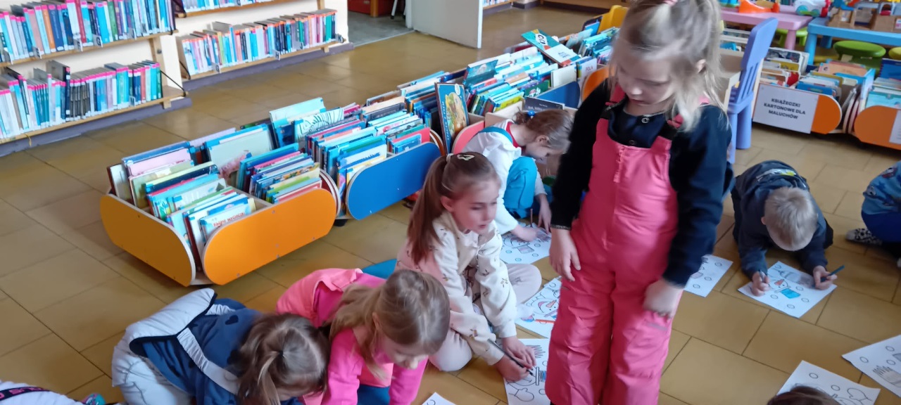Kosmoludki w bibliotece na zajęciach edukacyjnych "Zima wokół nas"